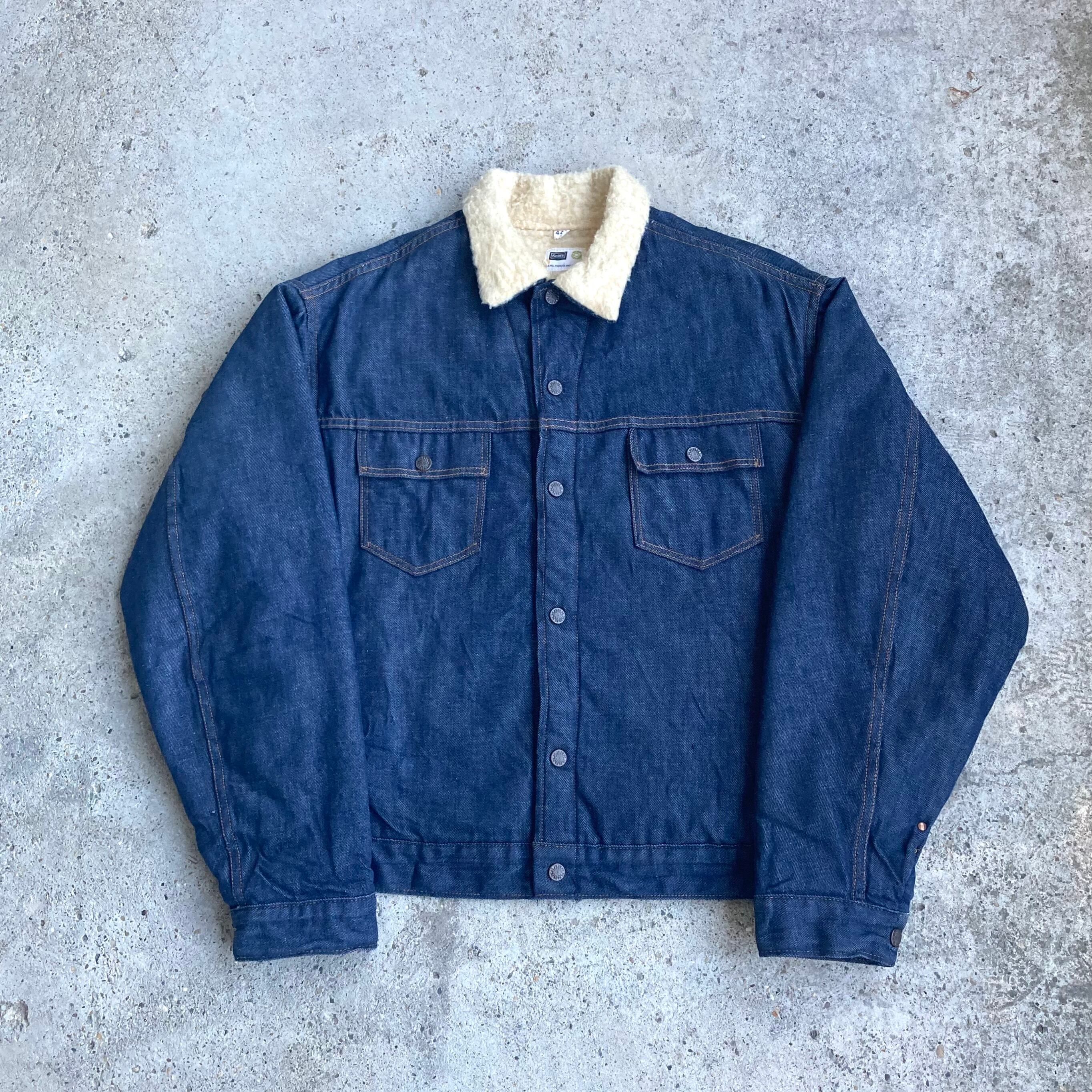 張りのあるインディゴデニム地に、襟やライナー部分のボアデザインが温かみを感じる1着です。