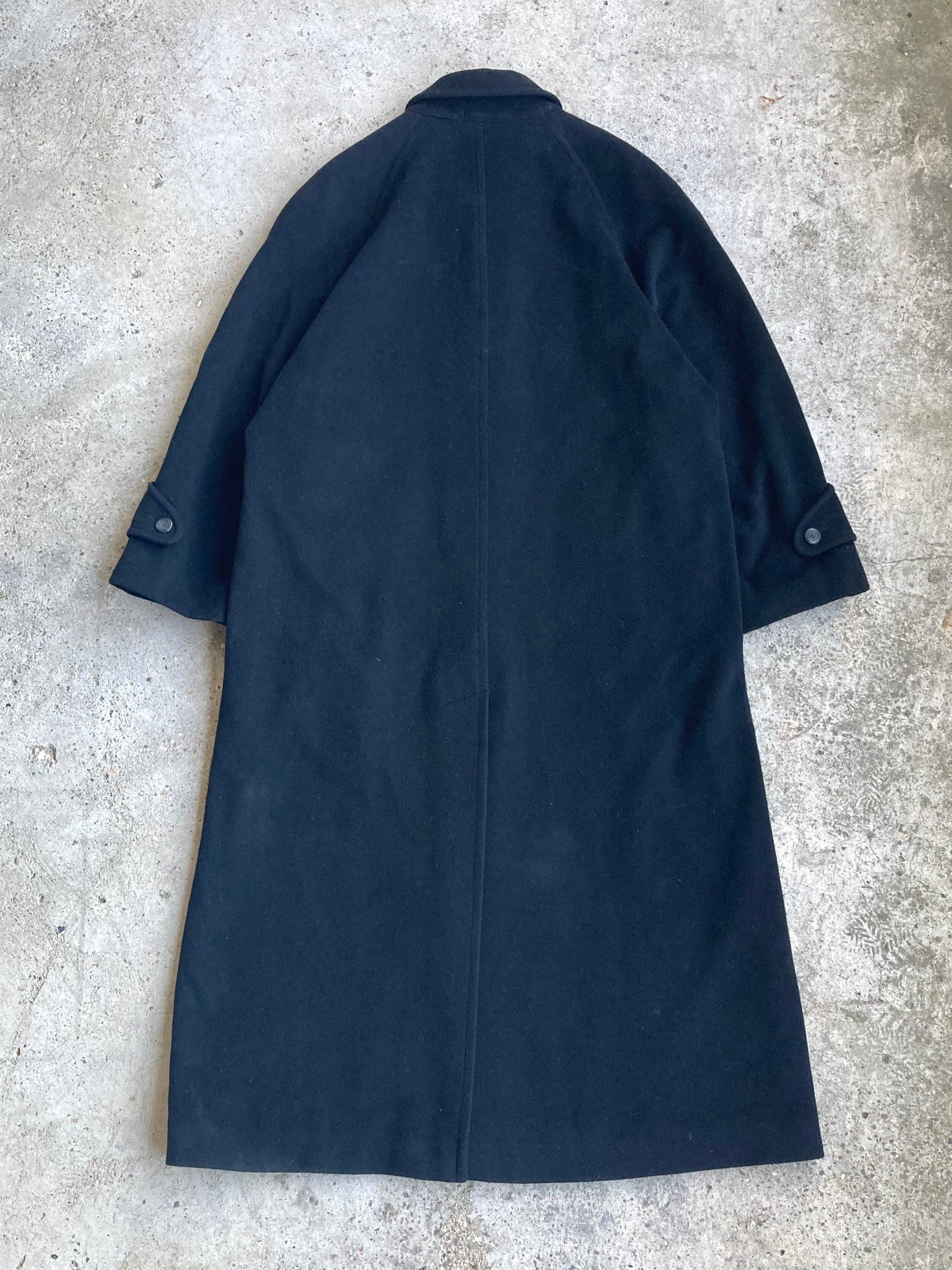 カシミヤ100%が贅沢に使用されたロングコートになります。万能のブラックカラーに加え、ゆったりと長い丈感、そしてカシミヤ特有の滑らかで柔らかく、暖かな着心地が特徴的な1着です。