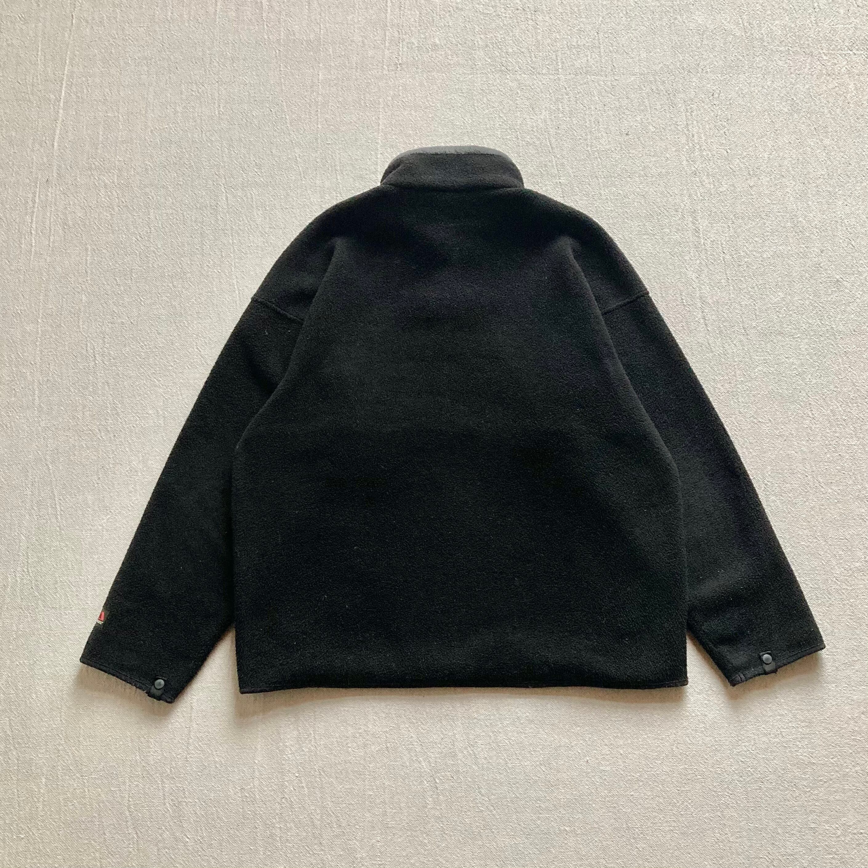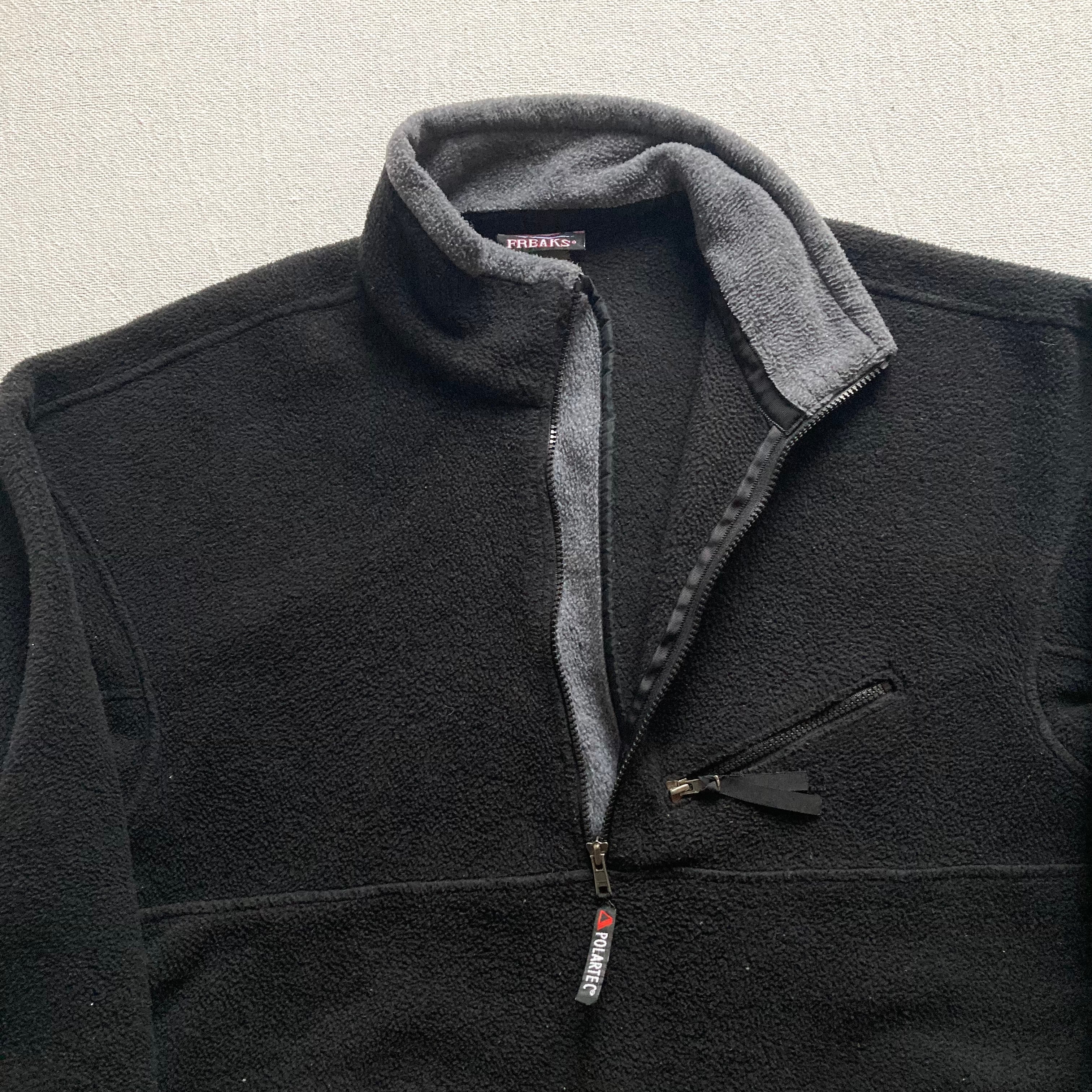 FREAKSのプルオーバー フリースジャケットになります。万能のブラックカラーにPOLARTEC生地、フロント部分の貫通ポケット、そしてシャープな雰囲気のプルオーバー仕様が特徴的な1着です。