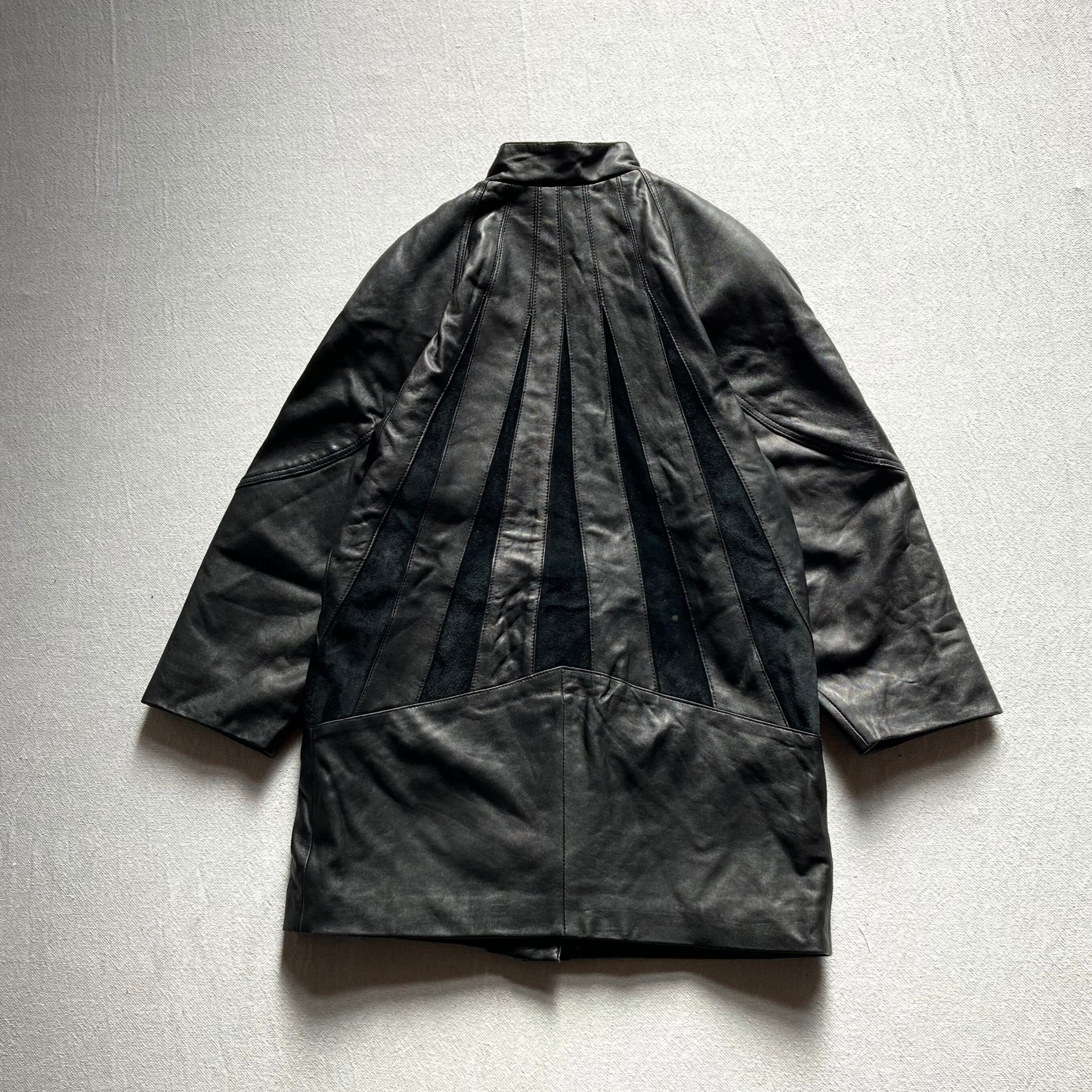 フロント・バック部分にかけて、レザー×スエードの切り替えが施された個性的な1着です。表記無しですがおそらく羊革が使用されており、柔らかで滑らかな革質をしております。