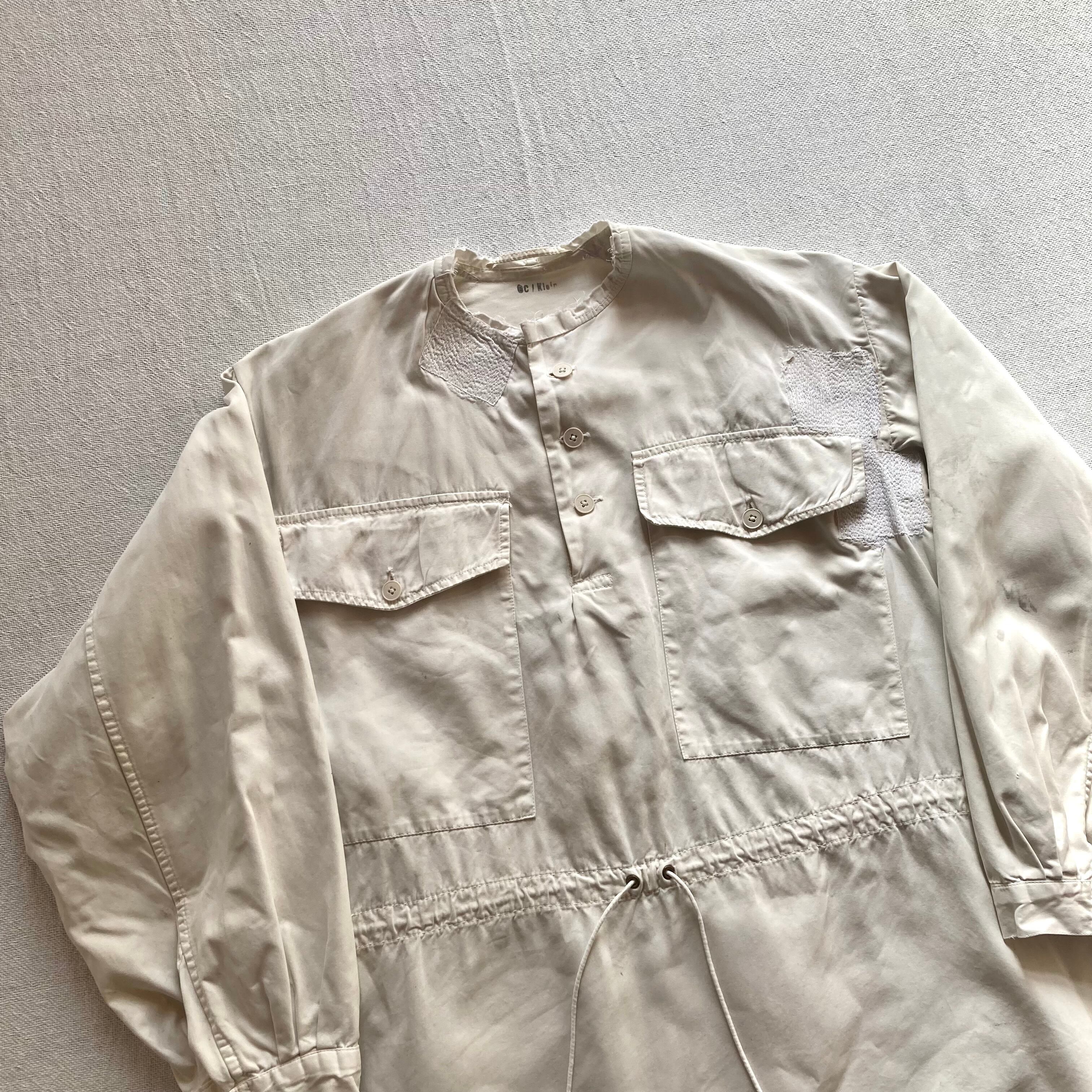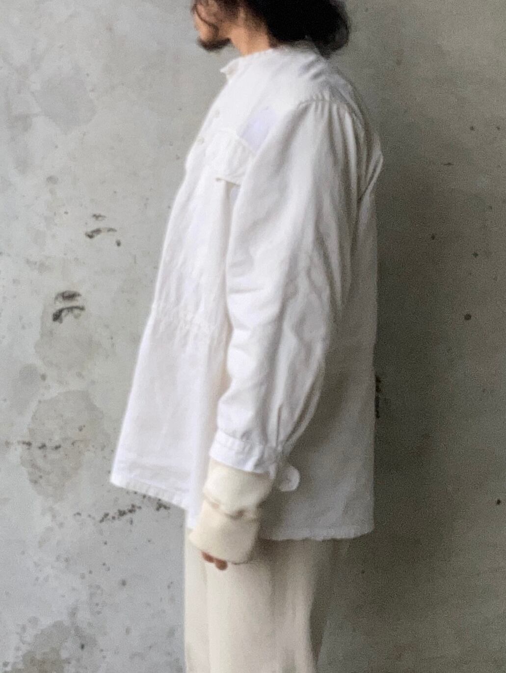 元々アノラックパーカーだったようですが、フードが切り取られノーカラーシャツのように変更された1着です。
