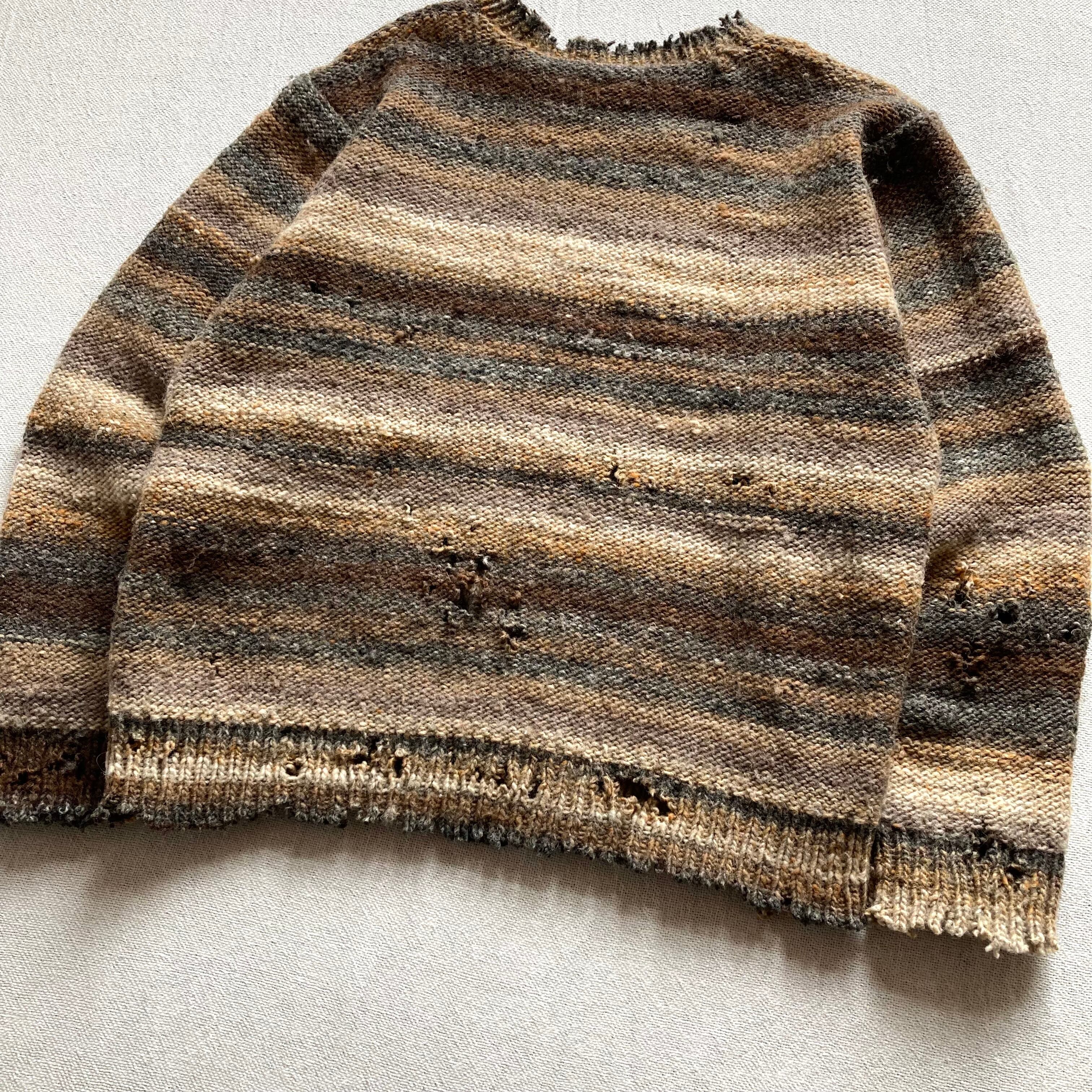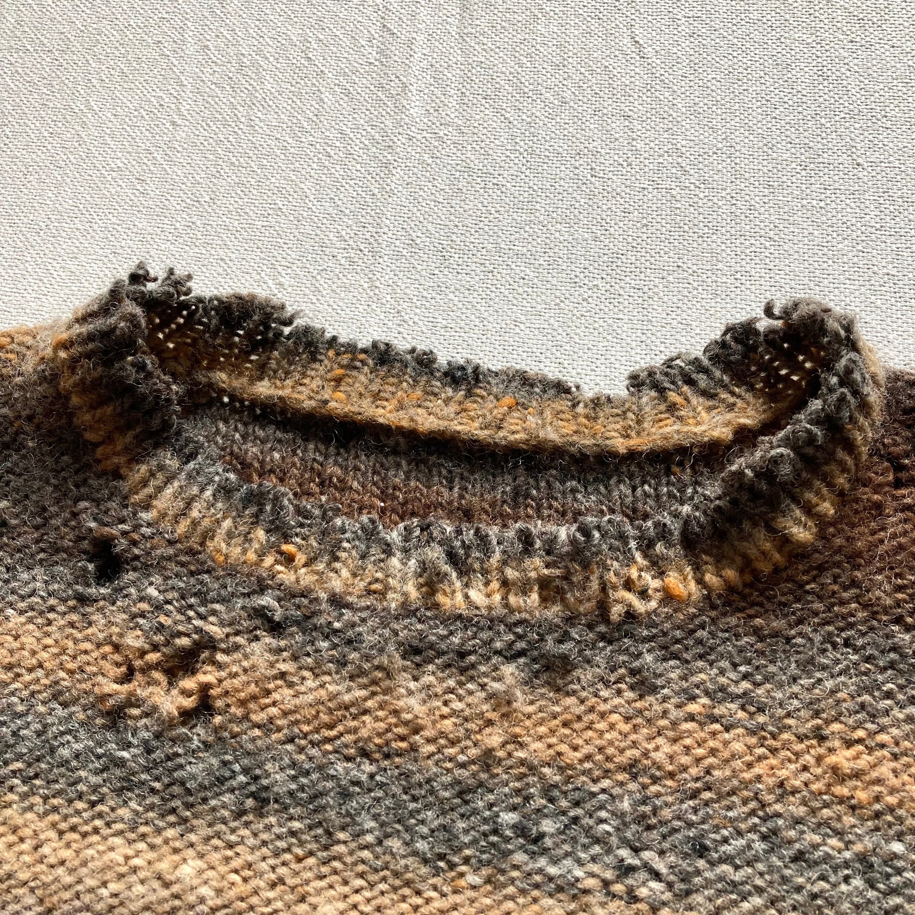 首元や裾・袖・ボディなど、全体のダメージが特徴的なマルチボーダーセーターになります。
