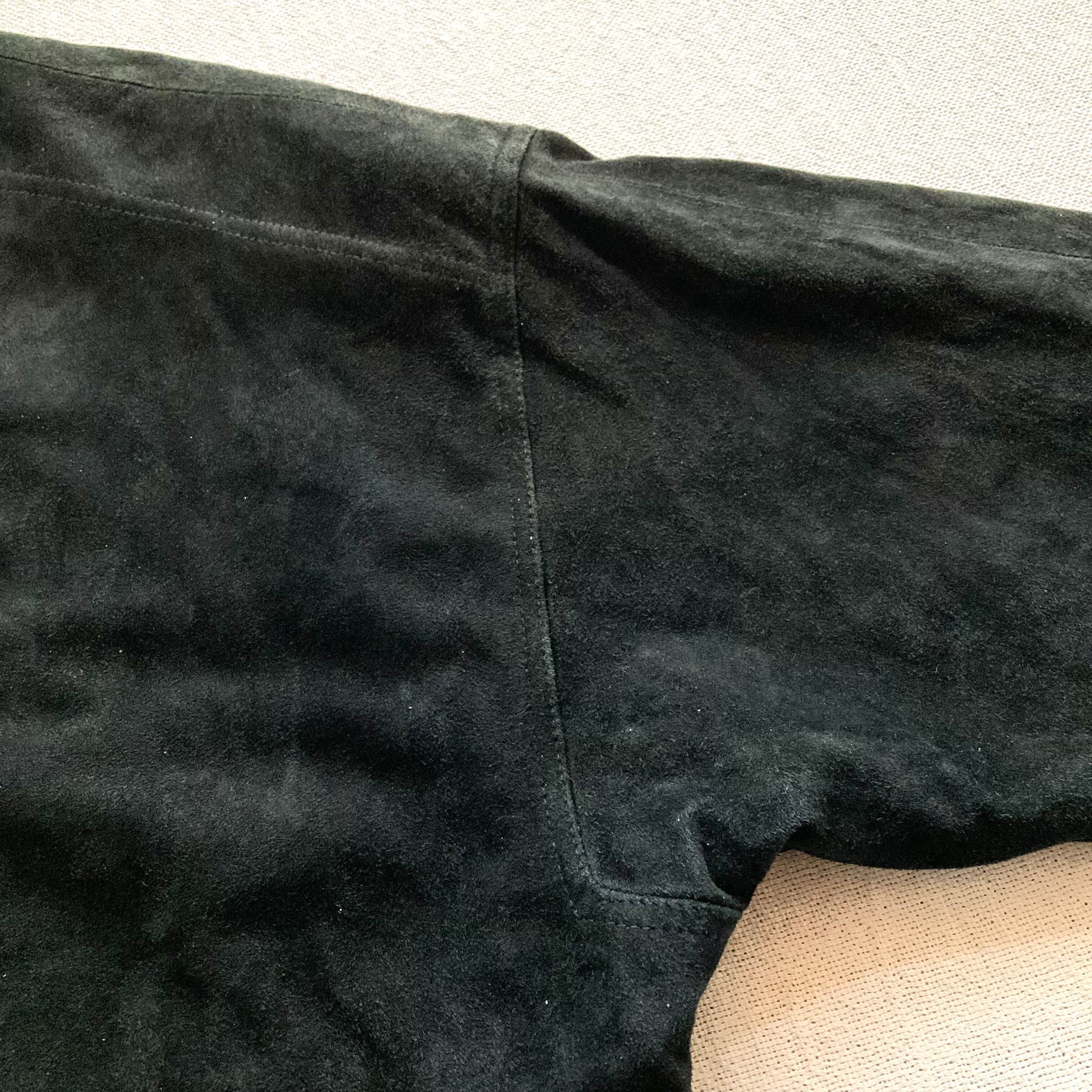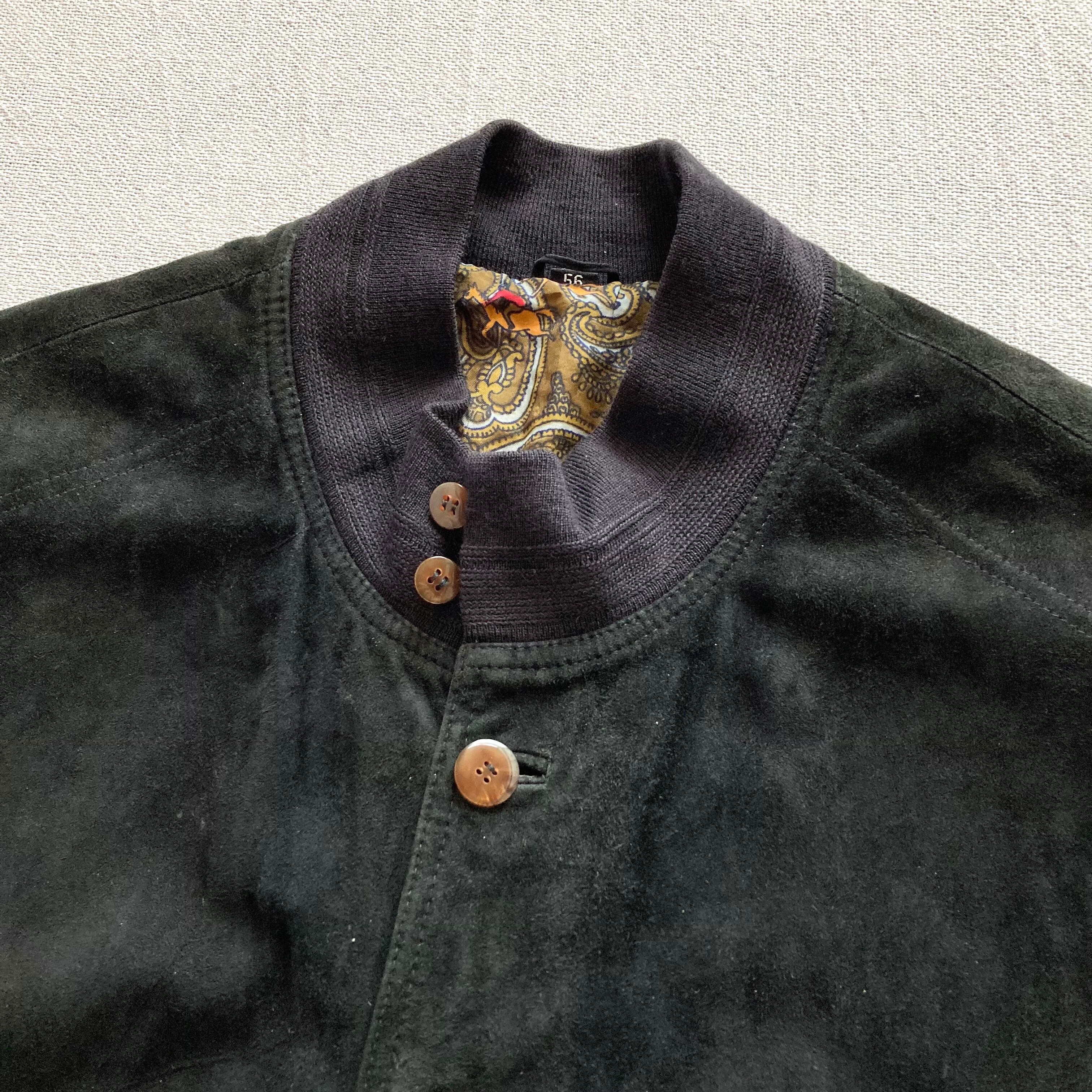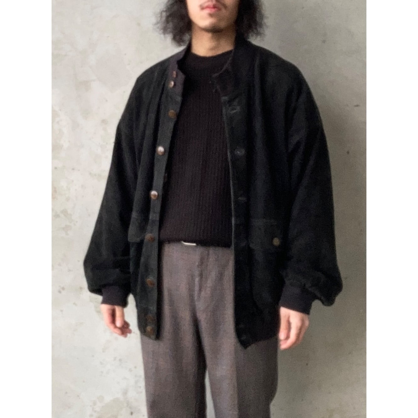 柔らかく滑らかなピッグレザーが使用されたイタリア製レザーブルゾンになります。スエードに似たブラックレザーの質感が非常に雰囲気の良い1着となっております。アームホールや肩まわりなど全体的にゆったりとしておりますので、レザーながらも力の抜けたラフな雰囲気で着て頂けそうです。
