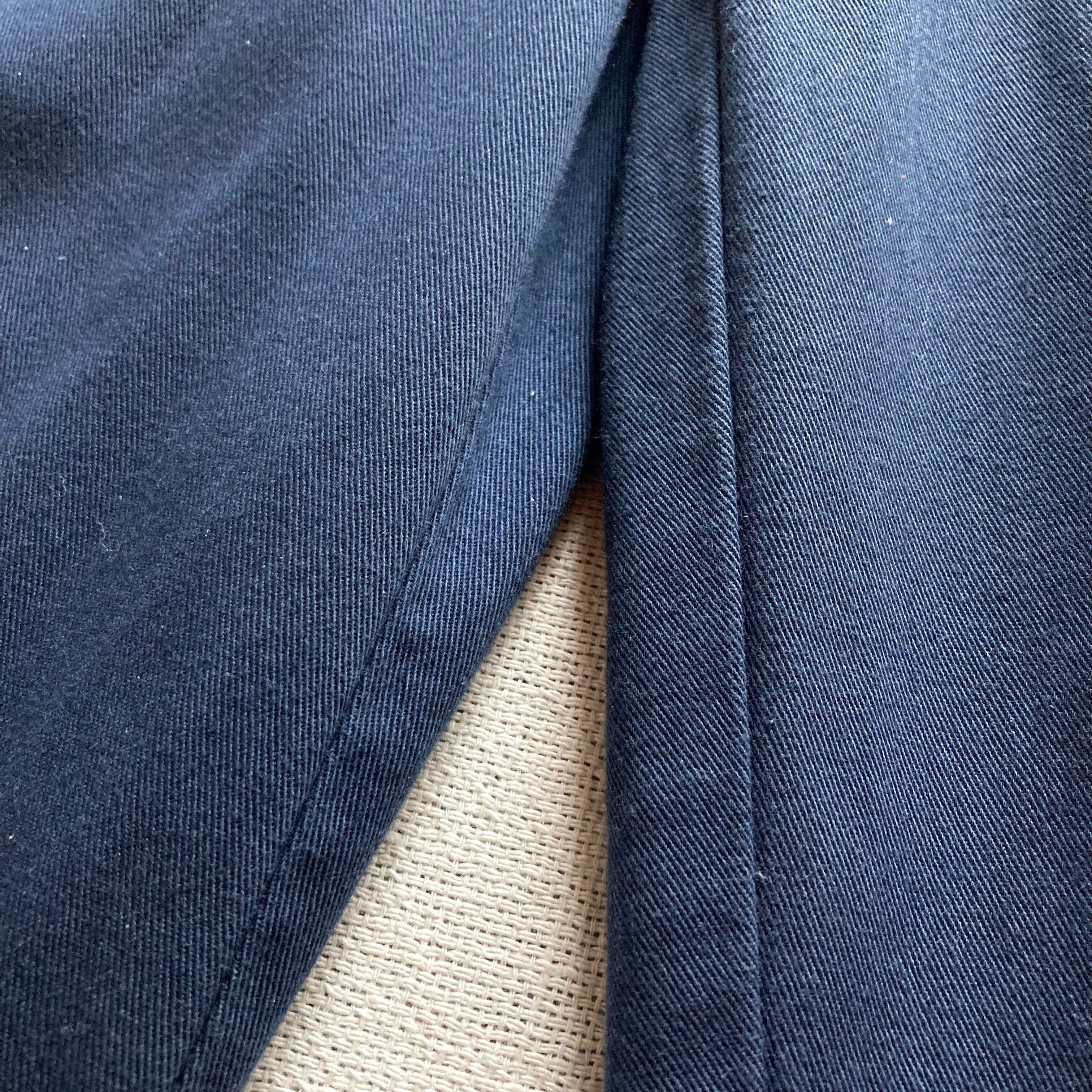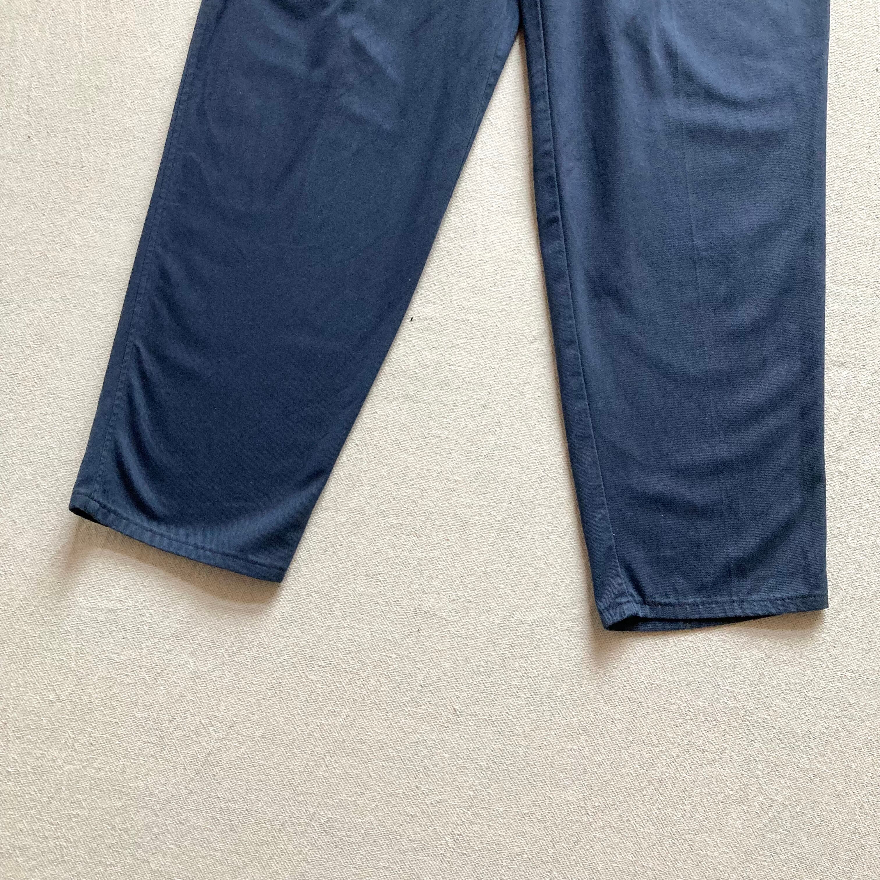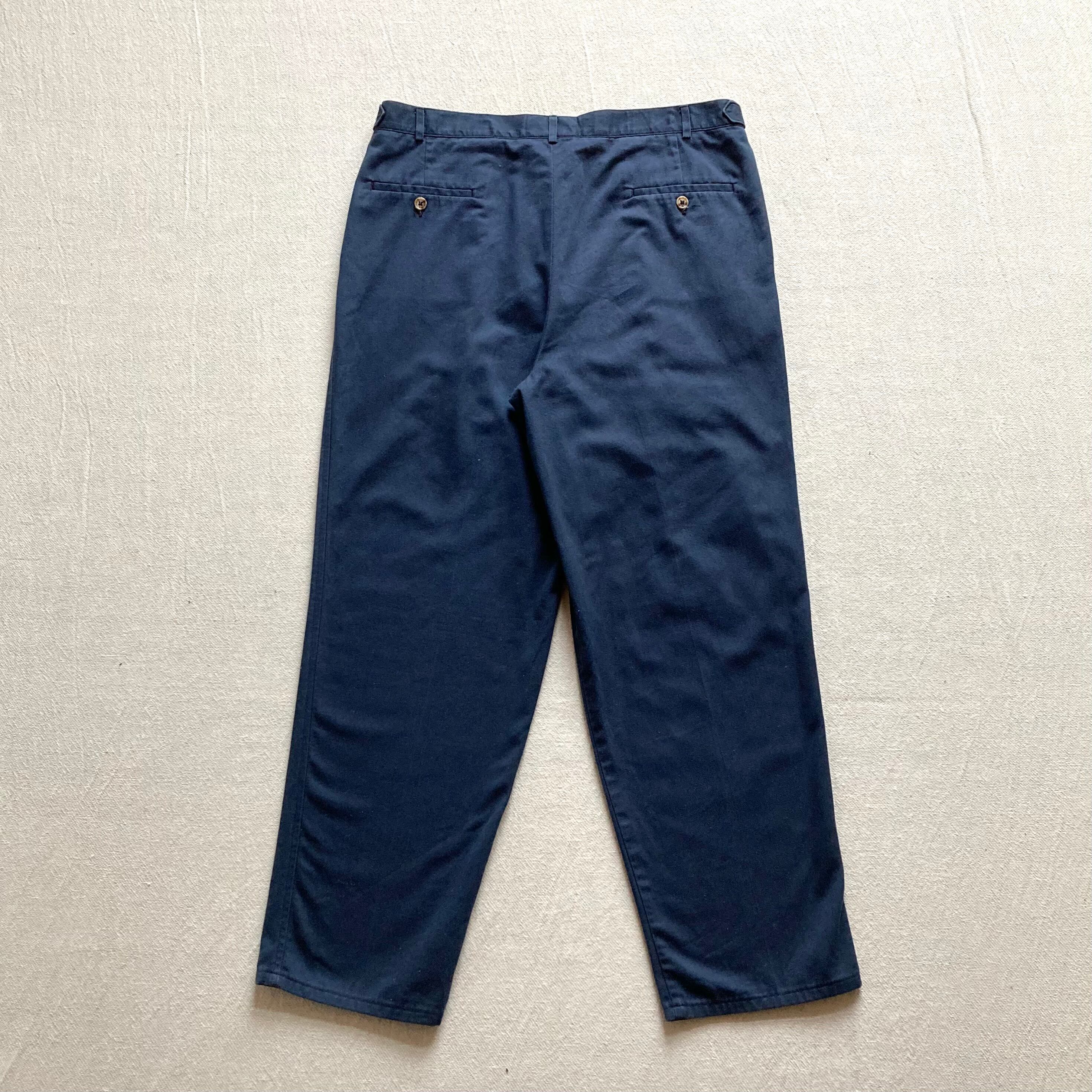80s〜90s USA製 THE FOX COLLECTION のコットンスラックスになります。落ち着きのあるネイビーカラーにゆとりあるオーバーシルエット、深めに入った2プリーツが特徴の一本です。
