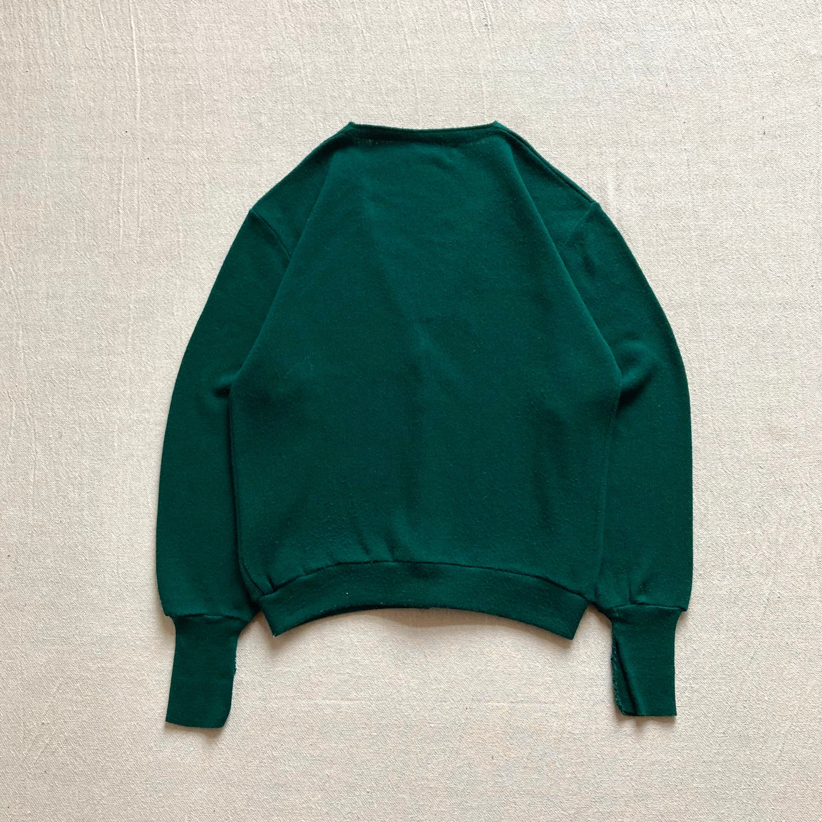 80s USA製 PURITANのオーロンアクリルカーディガンになります。深い色味のダークグリーンに、アームホールをはじめ全体的にゆったりとしたシルエットが特徴的な一着です。