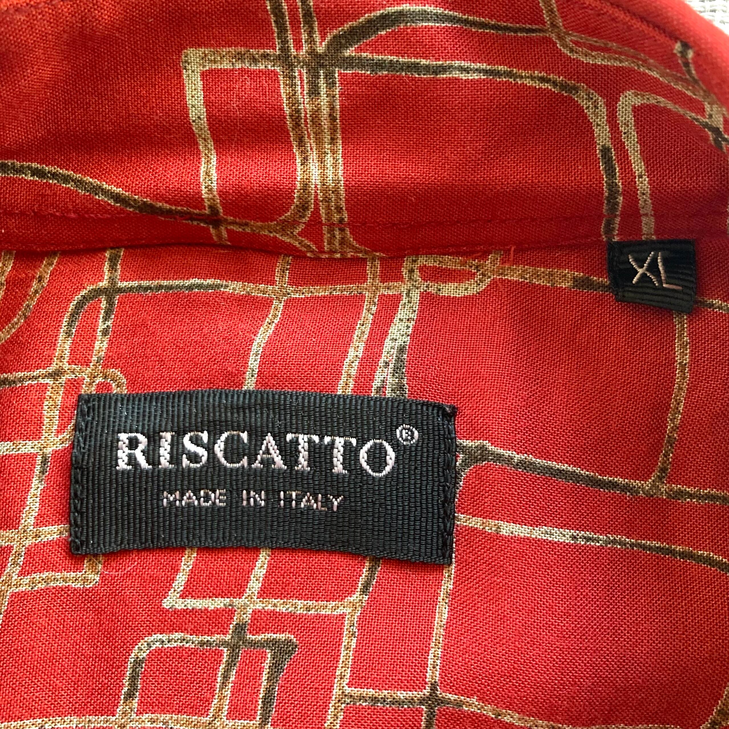 Italia製の総柄レーヨンシャツになります。鮮やかなレッドカラーの生地にartisticな総柄がデザインされた1着です。