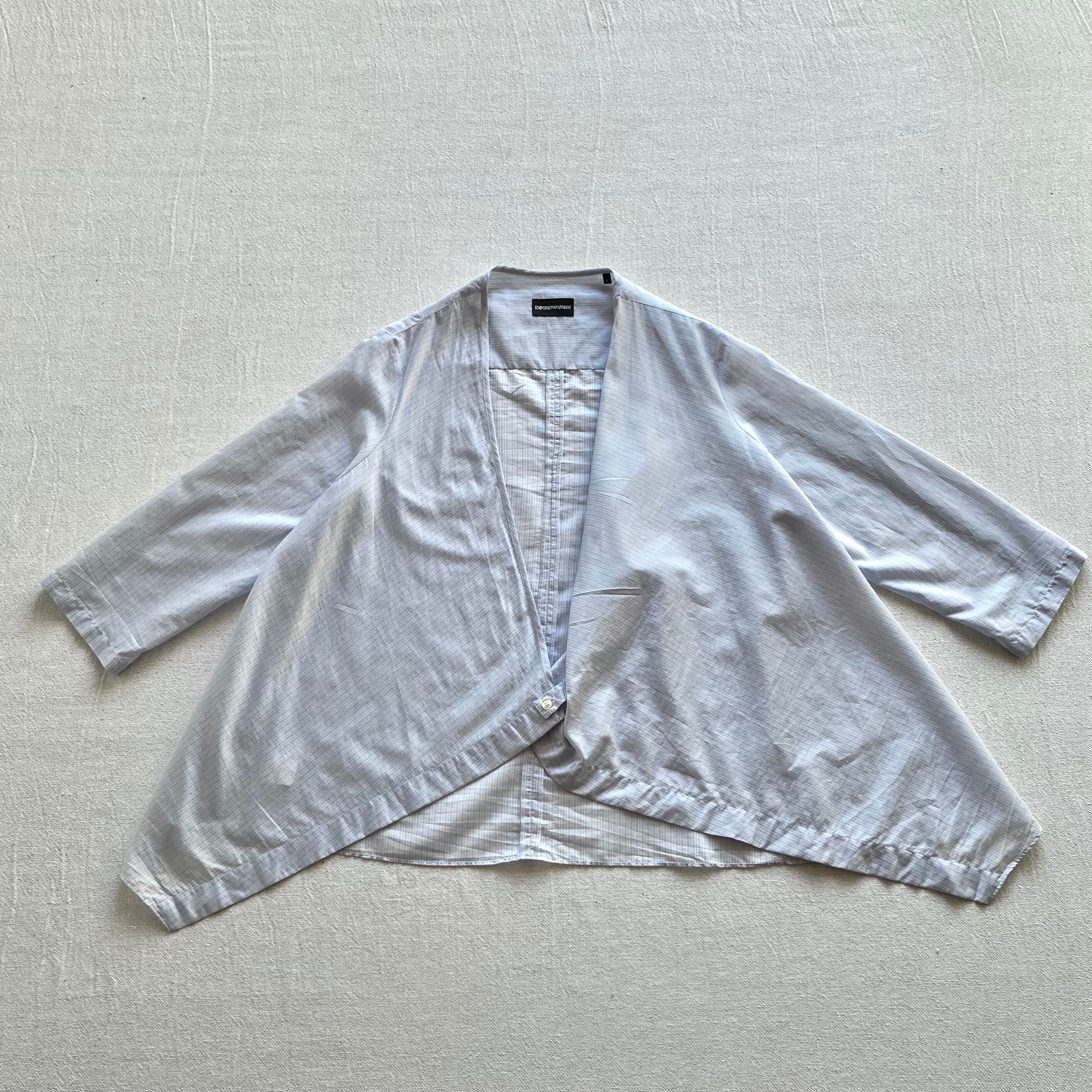 EMPORIO ARMANI の変形デザインストライプシャツになります。どこかポンチョのような雰囲気を感じる、Aラインが強調された個性的な1着です。
