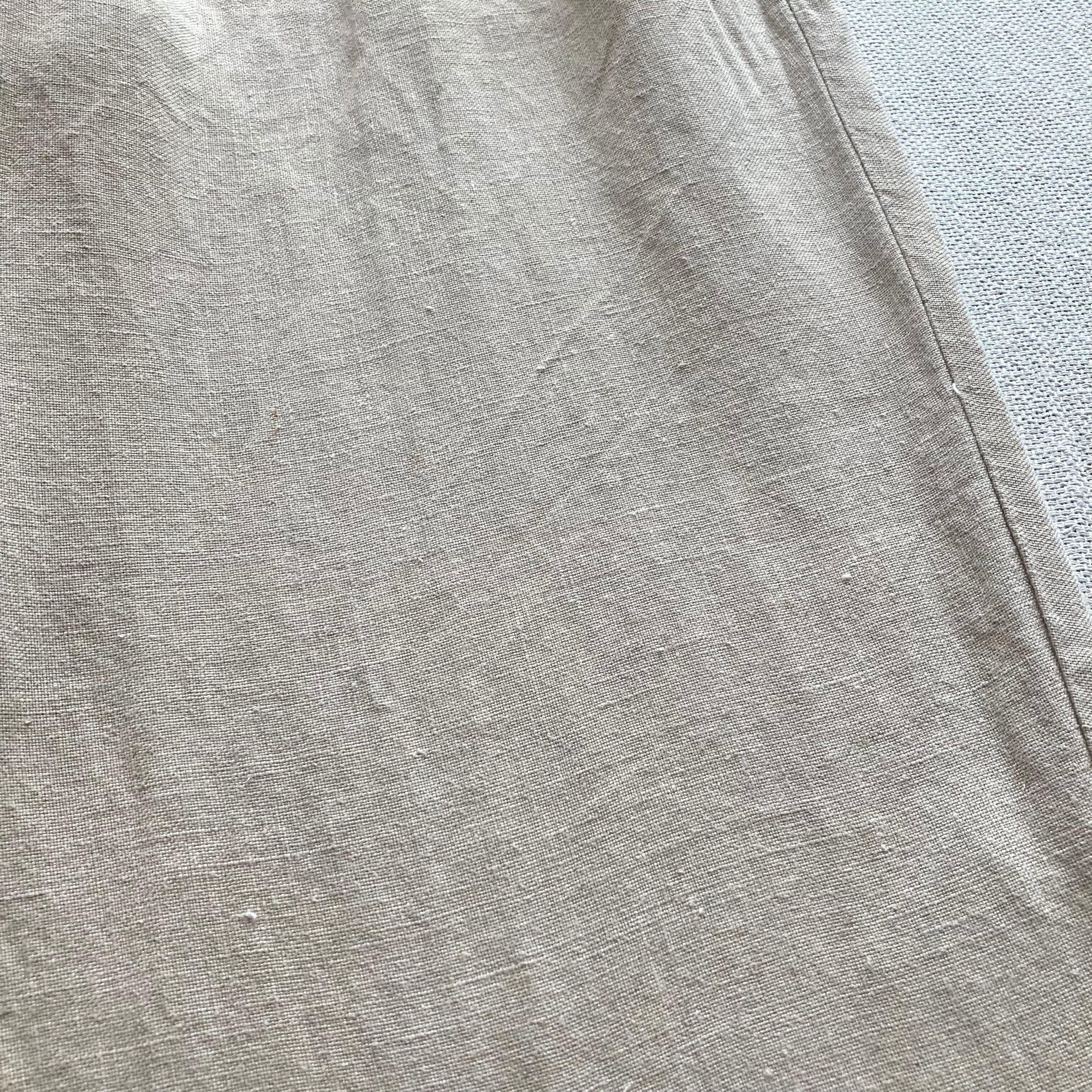 アイボリーの優しく素朴な色合いとlinen特有の軽やかな生地感が特徴の一本です。linenの良さを存分に活かしてくれるオーバーサイズシルエットで、緩くラフな春のスタイリングにぴったりのスラックスになってくれるかと思います。形も美しい一本ですのでおすすめです。