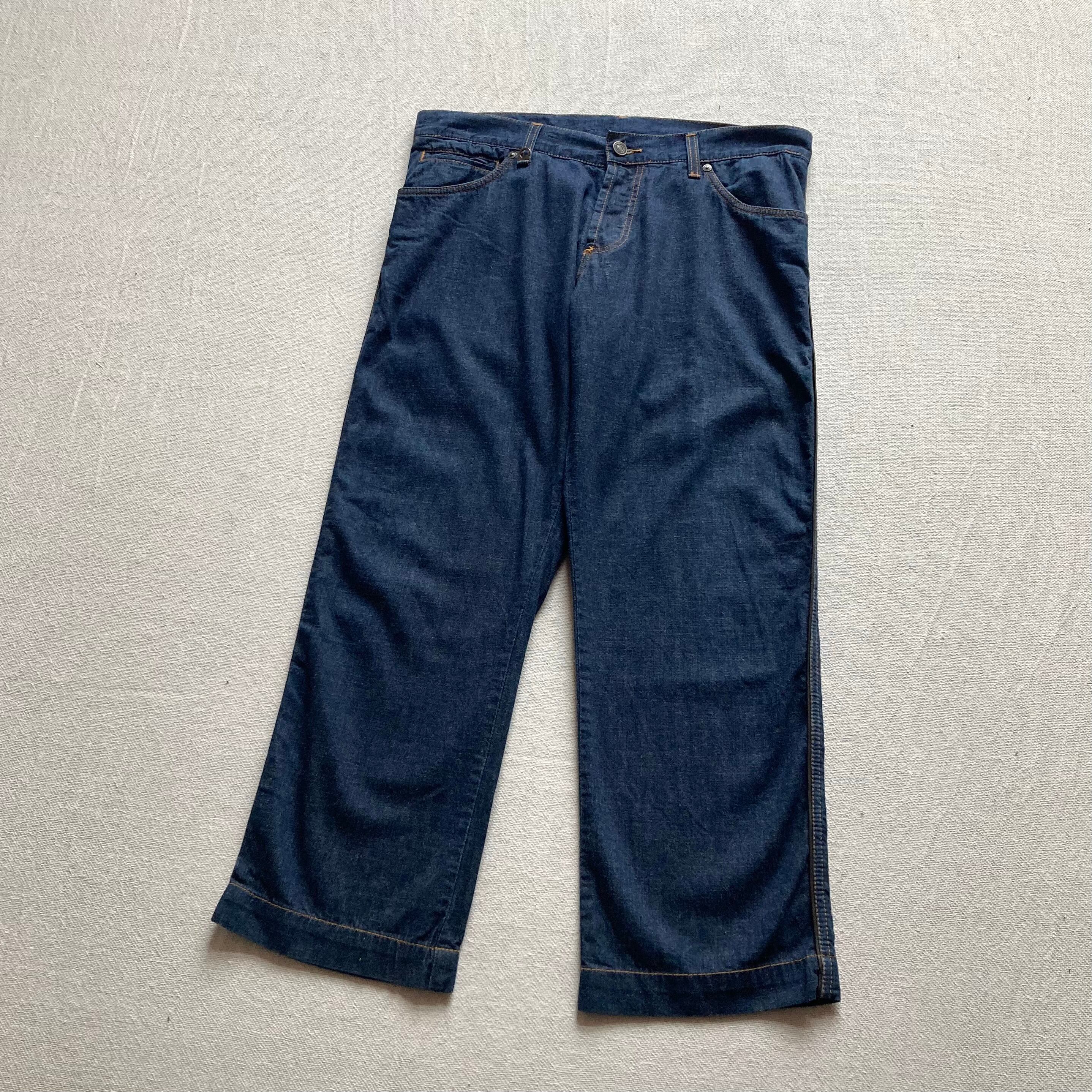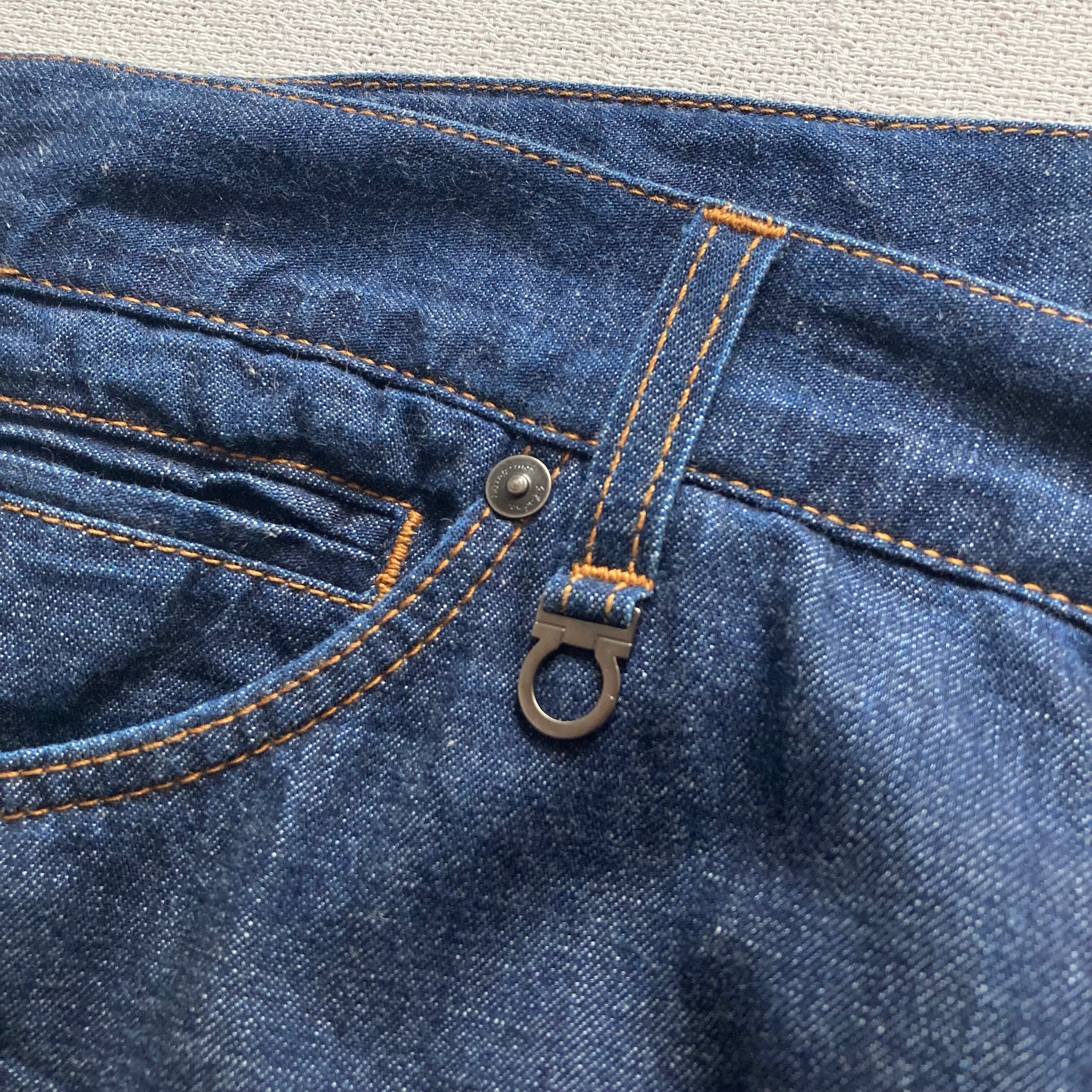 Italia製 Salvatore Ferragamo のデニムパンツになります。ゆとりあるウエスト周りですが丈感は短めとなっておりますので、全体的に絶妙なシルエットバランスの一本となります。