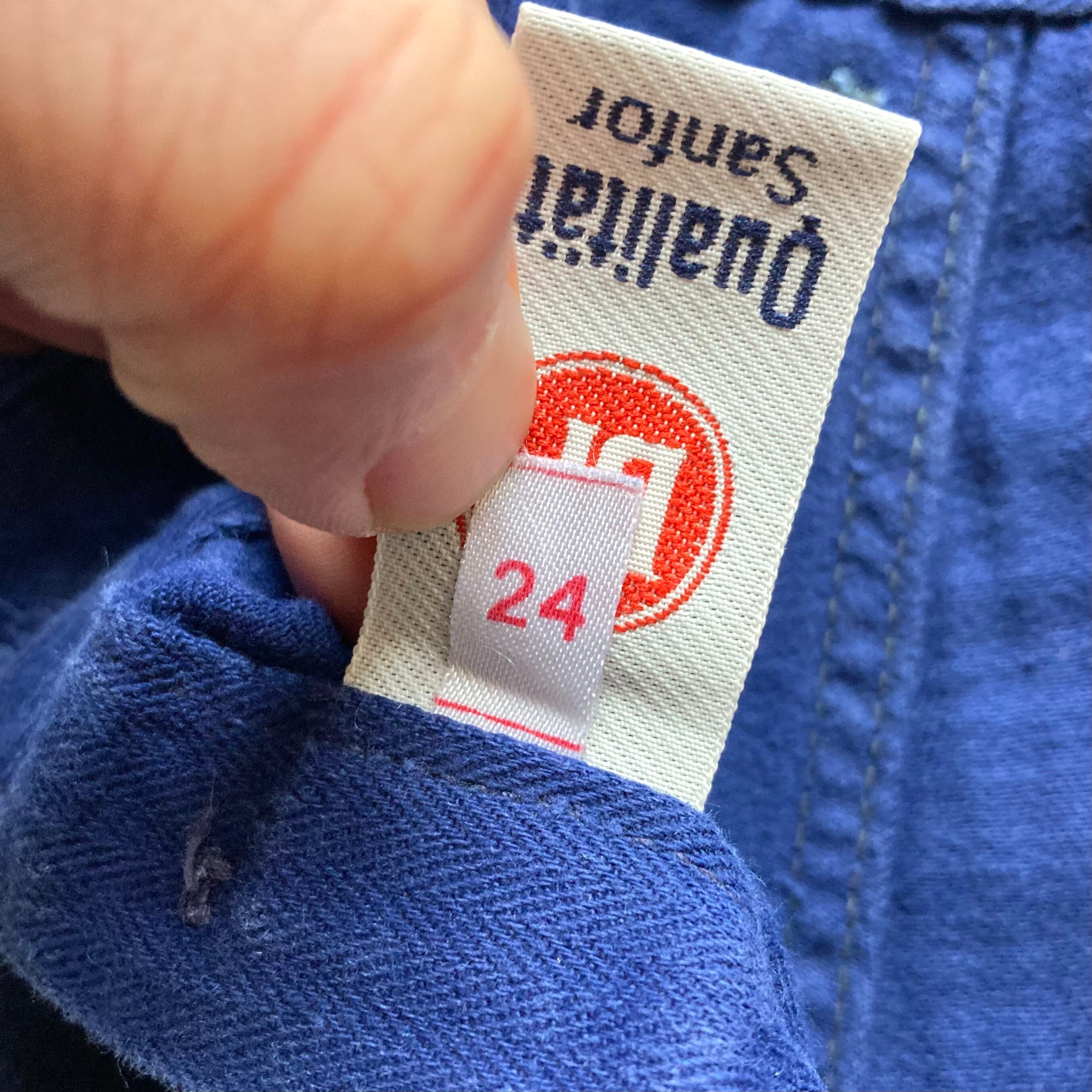 フランス製のユーロワークパンツになります。濃い目のブルーヘリンボーン生地、ややフレアがかったシルエット、所々ペンキ跡のような汚れの見られる雰囲気良い一本です。