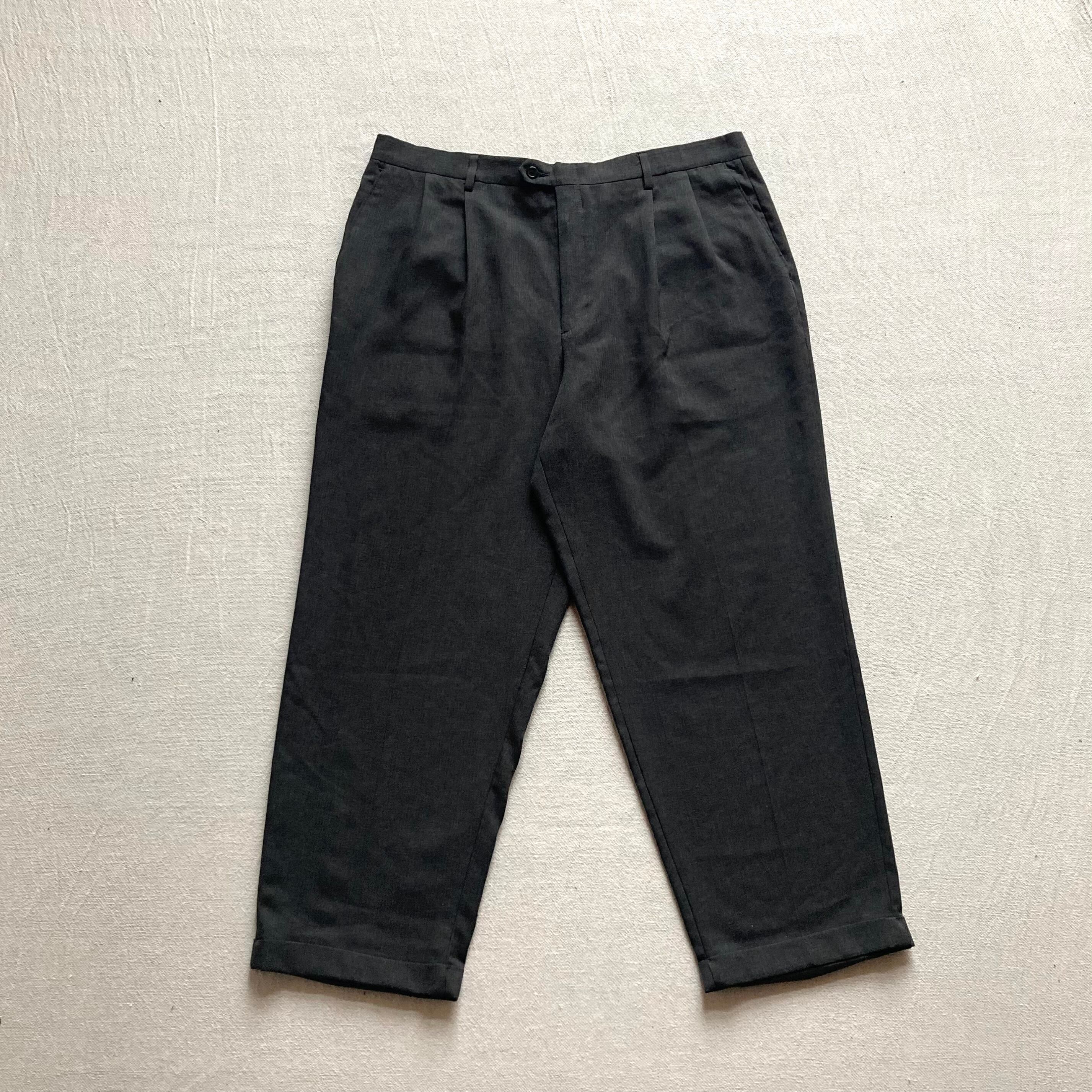 Claiborneのポリスラックスになります。チャコールグレーのシックな色味と、薄手で柔らかな生地感、そしてXL〜2XL程度の非常にゆったりとしたシルエットが特徴的な一本です。