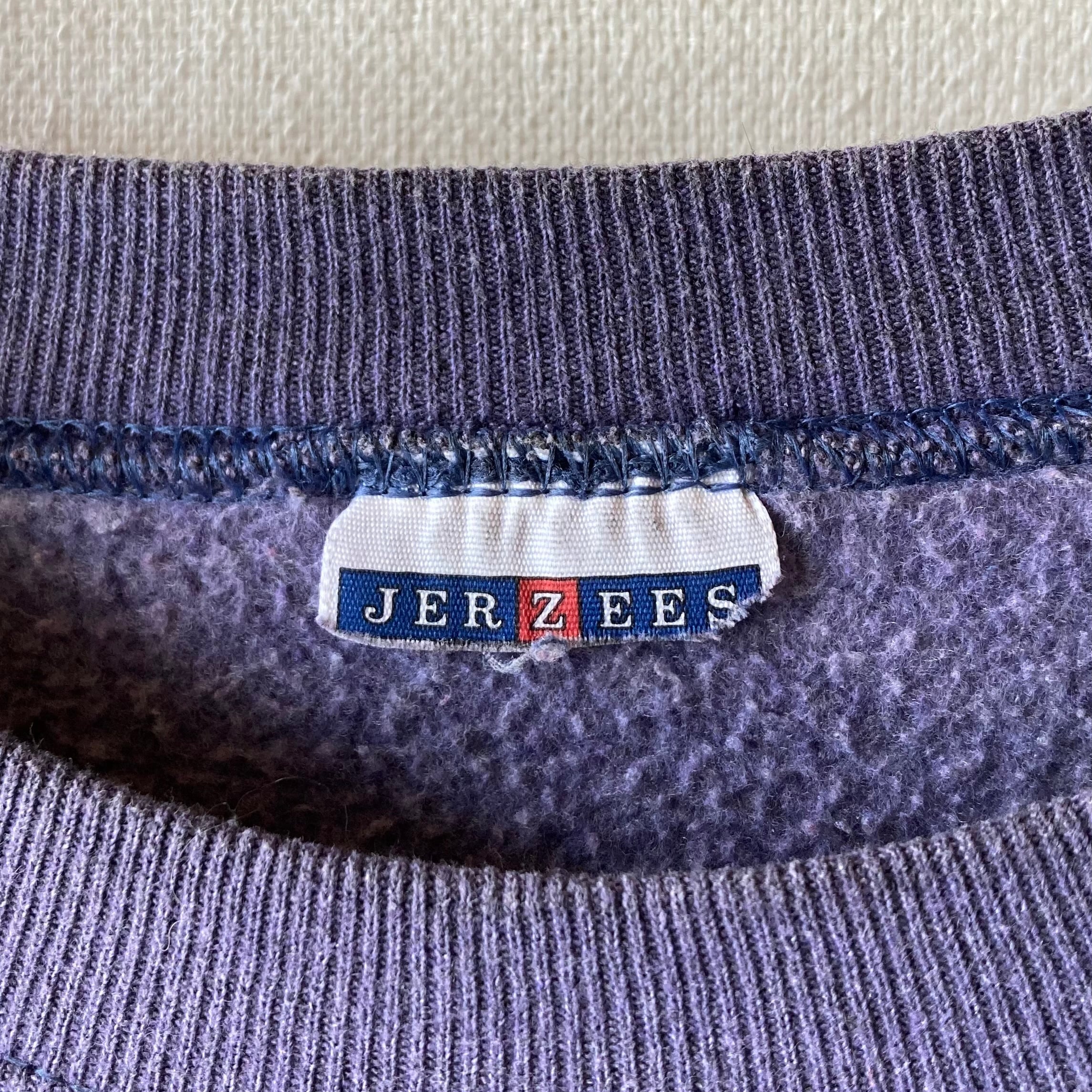 90s JERZEESの sweat shirtになります。所々fade感のあるパープルネイビーの生地感が、非常に雰囲気良い1着です。タグが一部欠損しているため詳細不明ですが、着用感的にはXLほどありそうです。