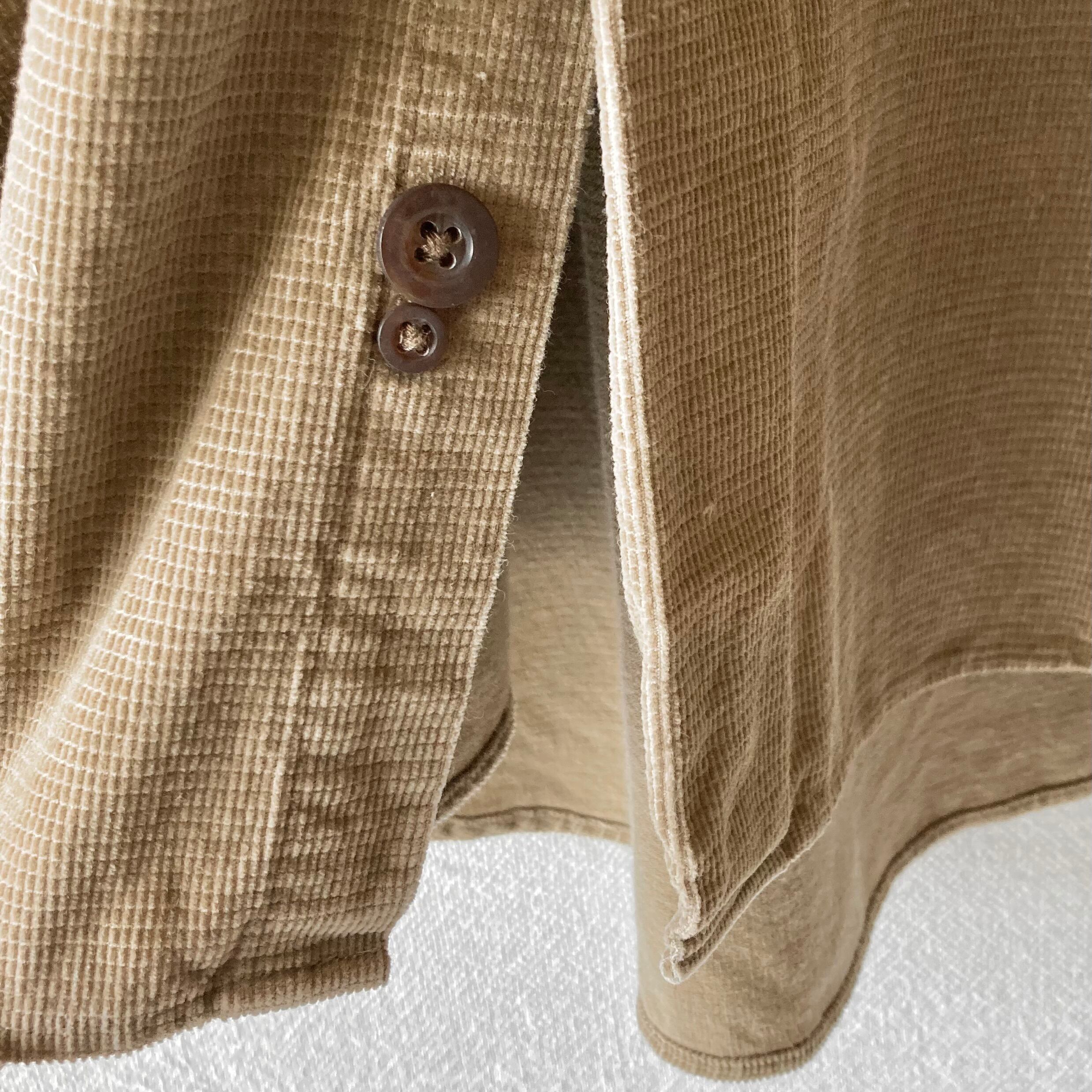 90s ST JOHN'S BAYのcotton shirtになります。雰囲気の良いサンドベージュの色味に、コーデュロイに似た粗目のガシッとした生地感が特徴の1着です。XXLのゆったりしたサイジングですので、ライトアウター代わりでも重宝してくれそうです。