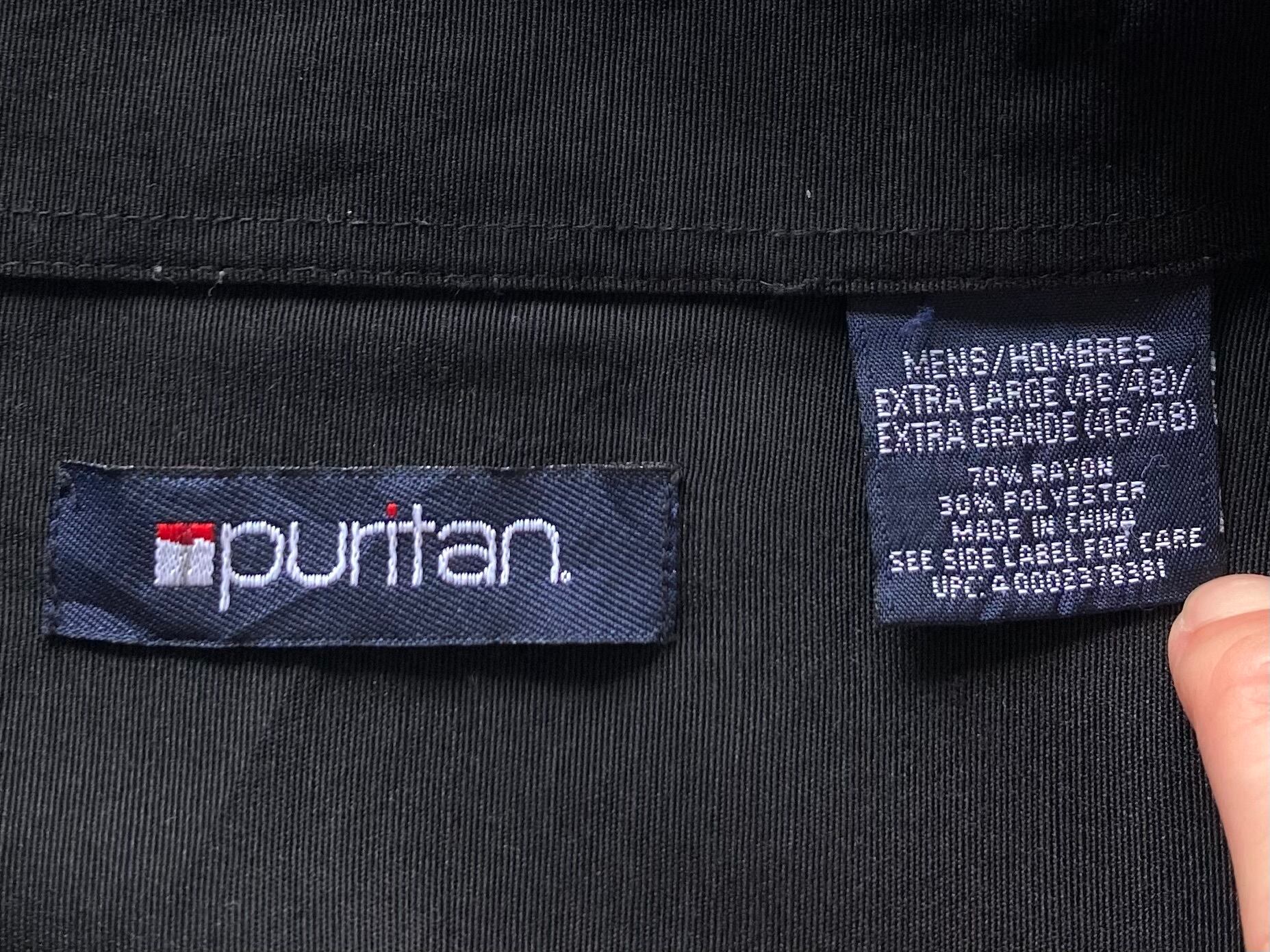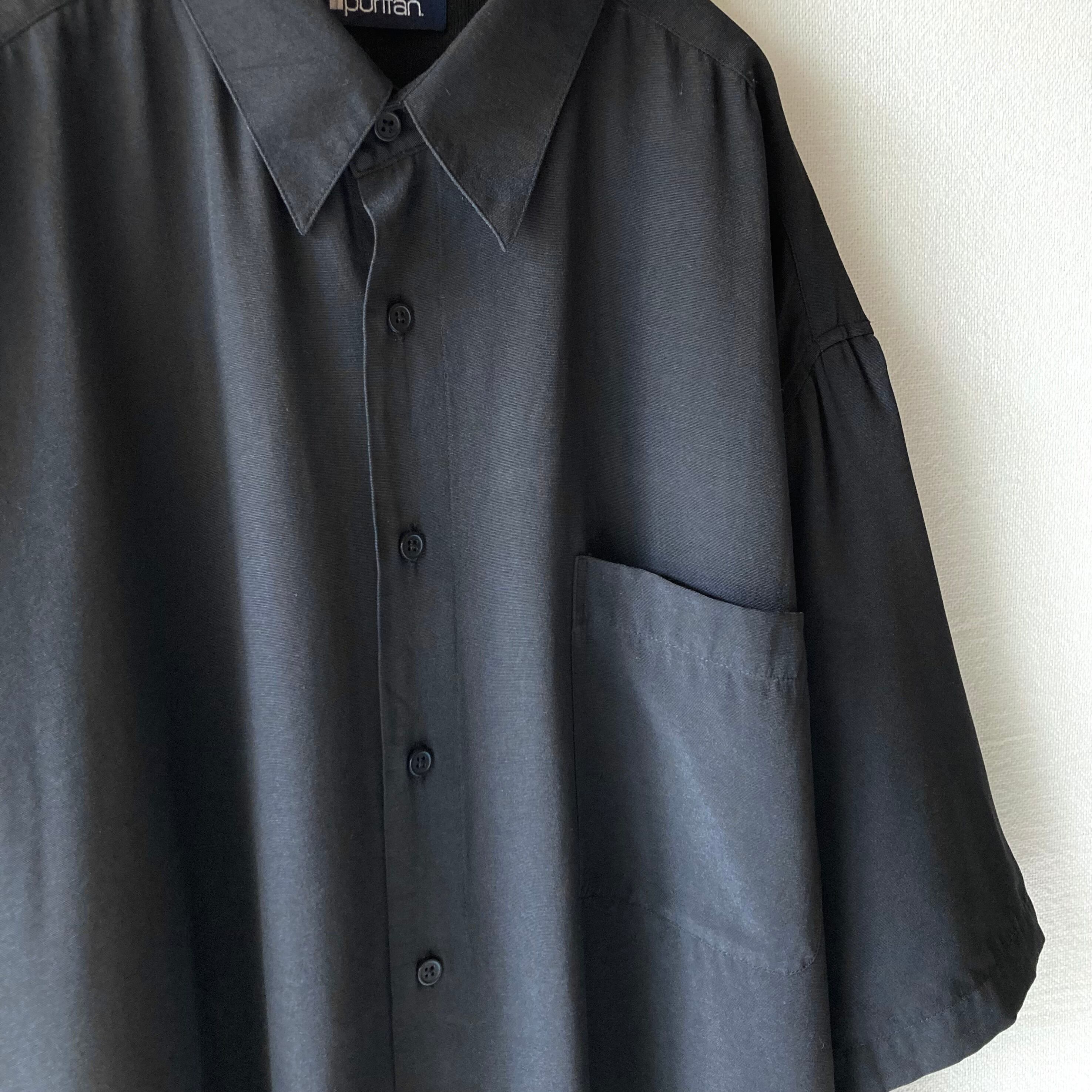 90s PURITANのhalf sleeve rayon shirtになります。万能のブラックカラーに、ポリレーヨン特有の薄手で軽く滑らかな生地感が特徴の1着です。サイジングにゆとりが御座いますので、1枚では勿論のこと、レイヤードスタイルでも活躍してくれそうです。