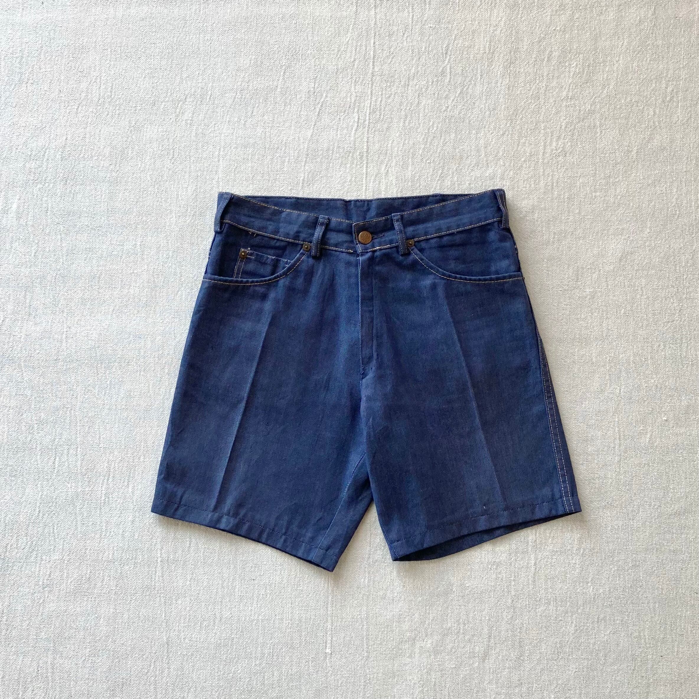 Franceのワーク・ミリタリーブランド " Le Pigeon Voyageur "のdenim shortsになります。70s頃の物と思われます。パリッと張りのあるデニム地に、すっきりとしたサイジングが特徴の一本となります。ladies向けの商品となりますので、サイズの合う方は是非。