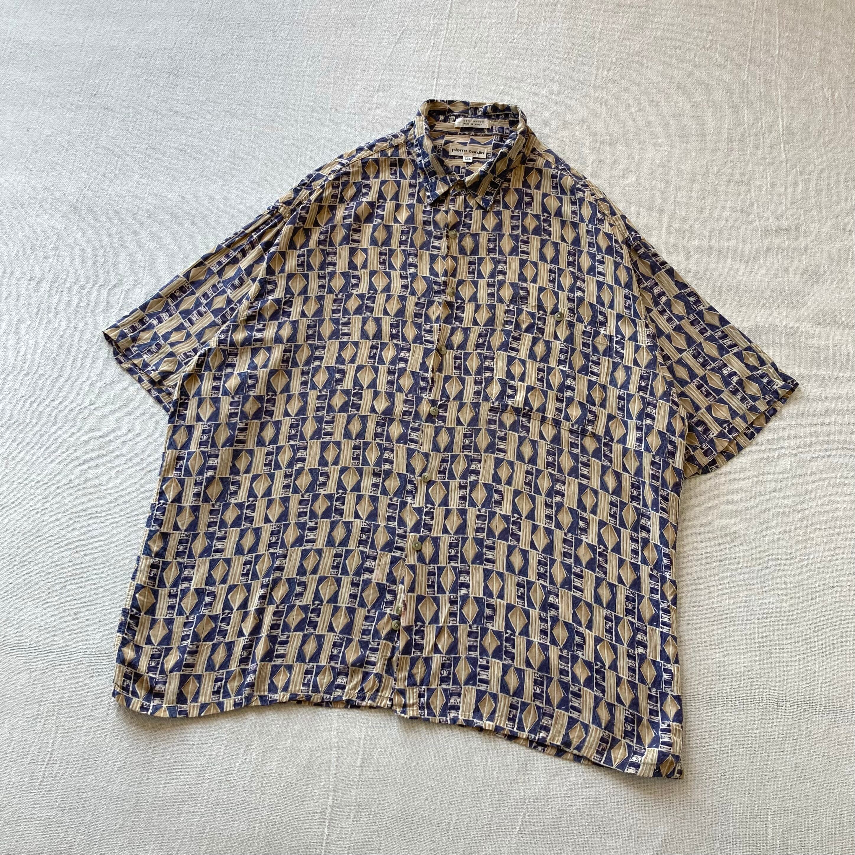 rayon100%のしっとりと滑らかな生地感と、XXLのゆったりとしたサイジングが特徴の1着です。ブルー・オレンジのカラーリングが個性的で可愛らしいかと思います。