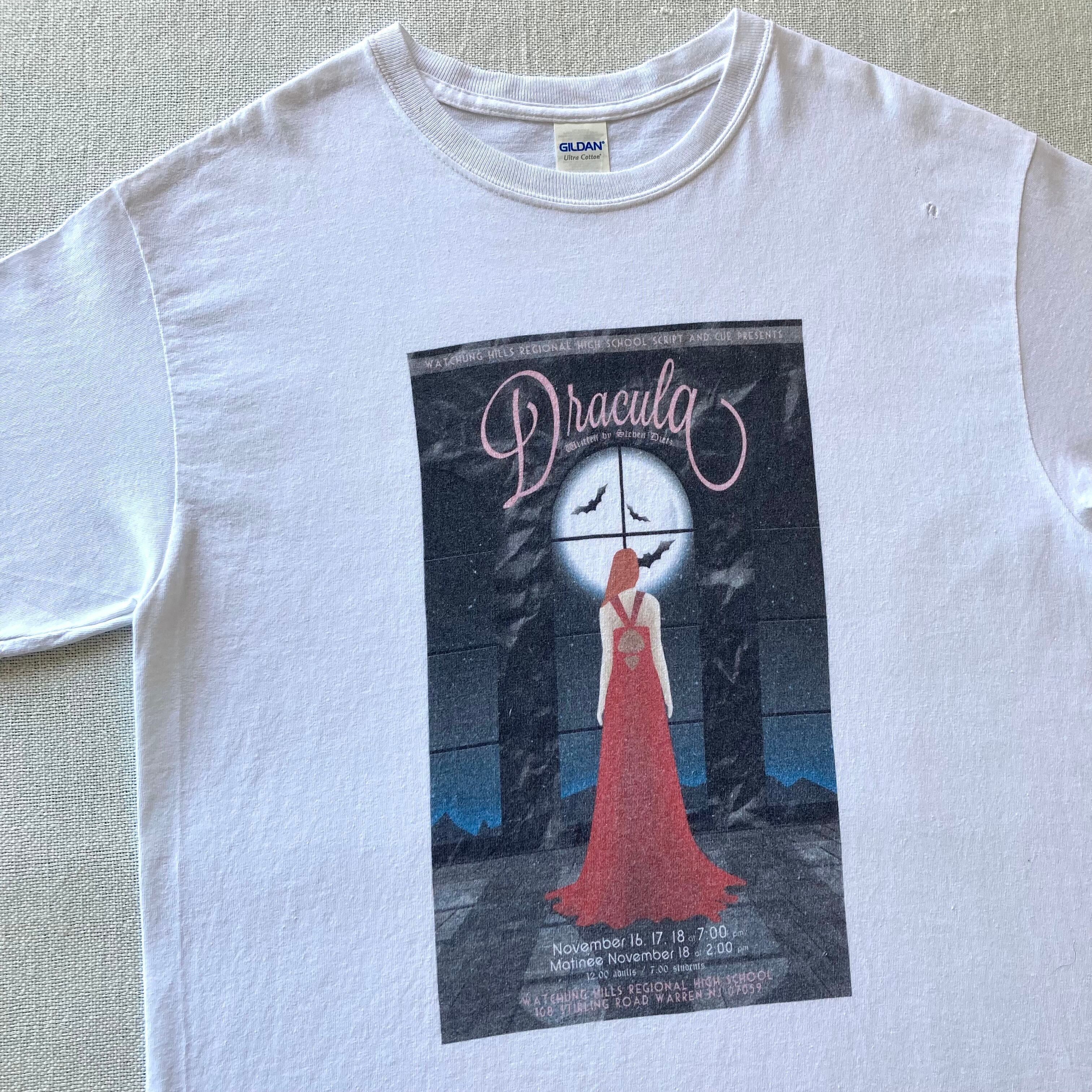 Draculaのイラストがデザインされたprint teeになります。米国の学園舞台で使用された宣伝teeのようです。sizeMのすっきりとしたシルエットとなっております。