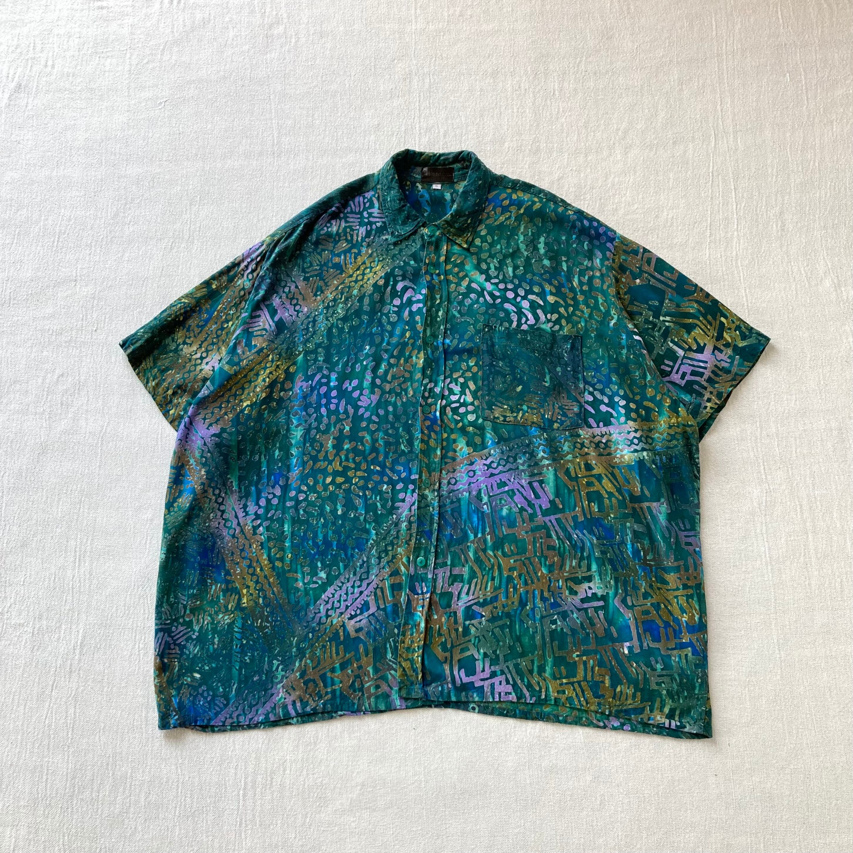 まるで海中に居るかのような美しいカラーリングとパターンの rayon shirtになります。 rayon特有のテロっとした生地感に加え、広い身幅のボックスシルエットですので、ドレープ感の出る着心地となっております。