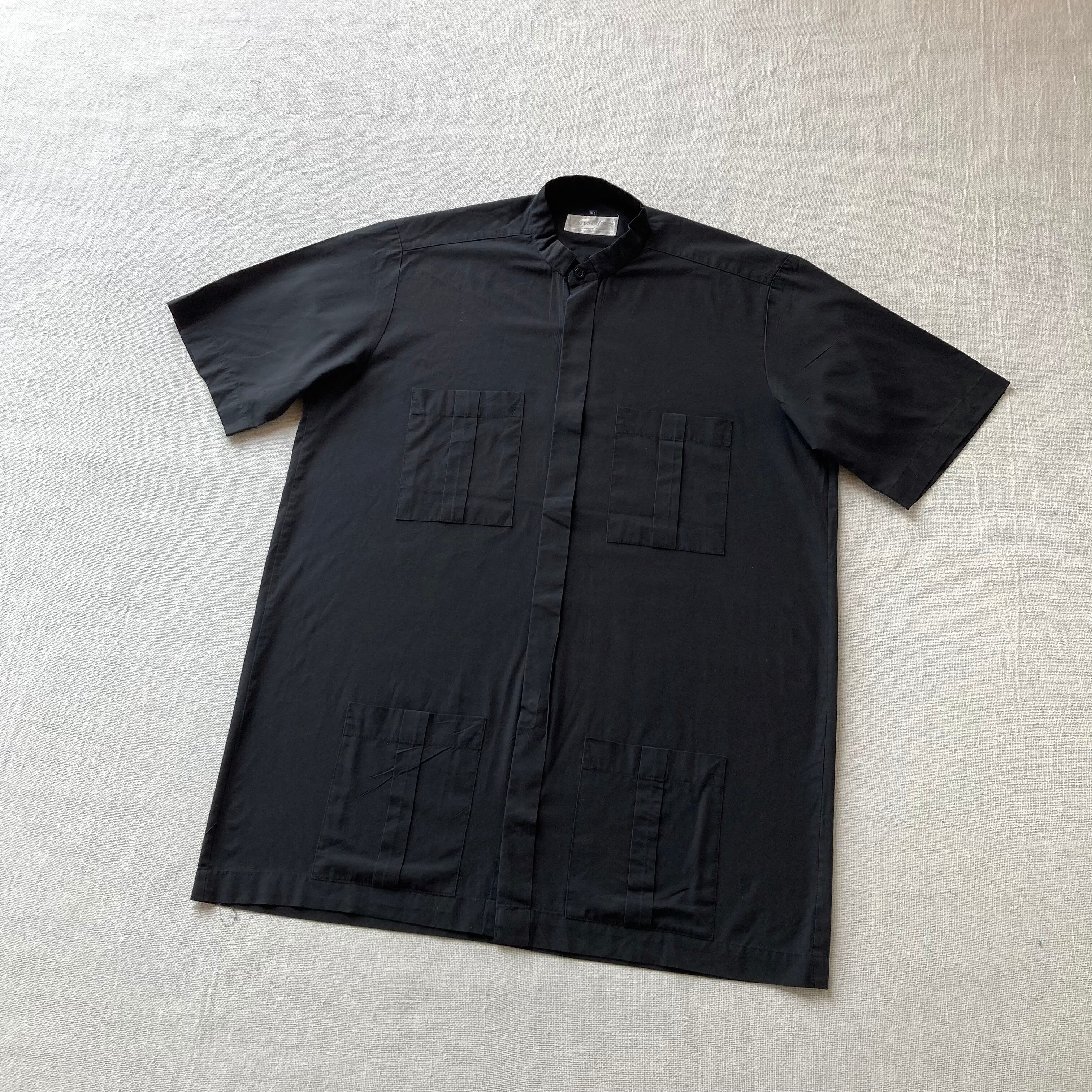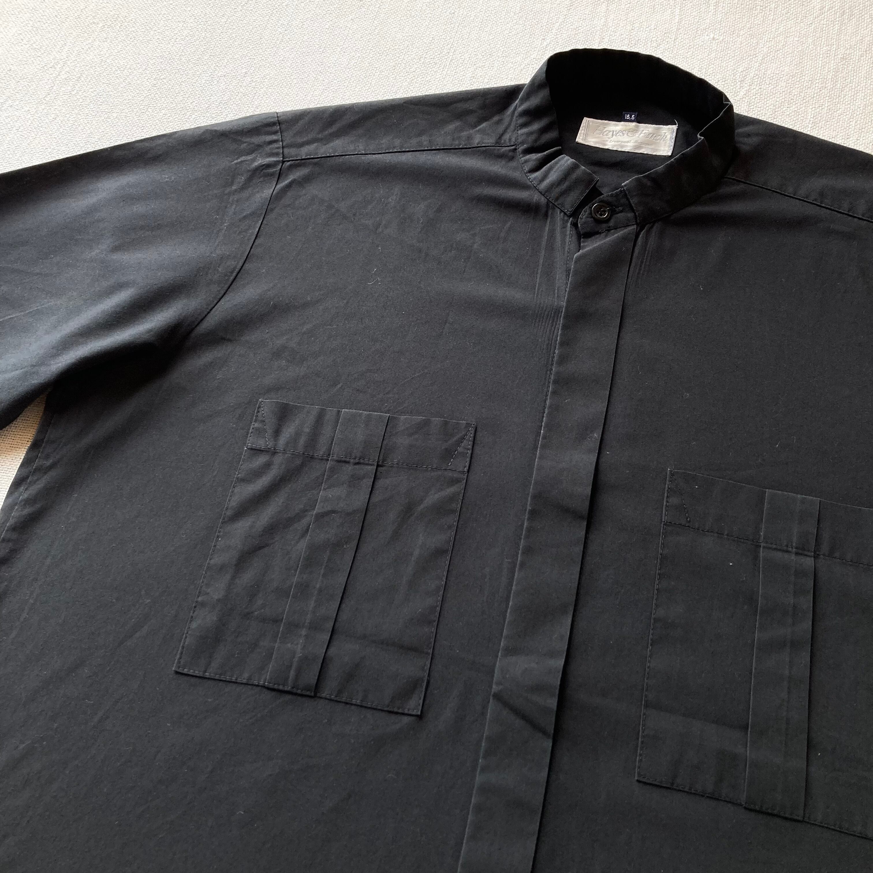 バンドカラー、比翼ボタン、フロントポケットが特徴的な一着です。ポリコットンのシャリっとした生地感も清涼感があります。