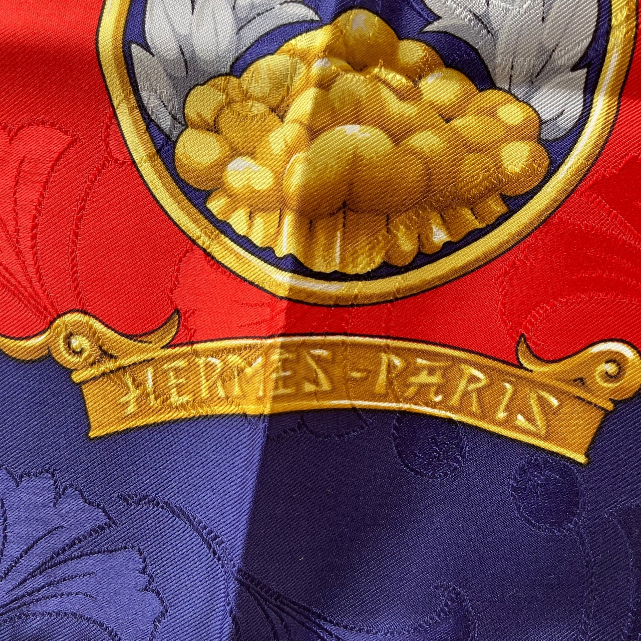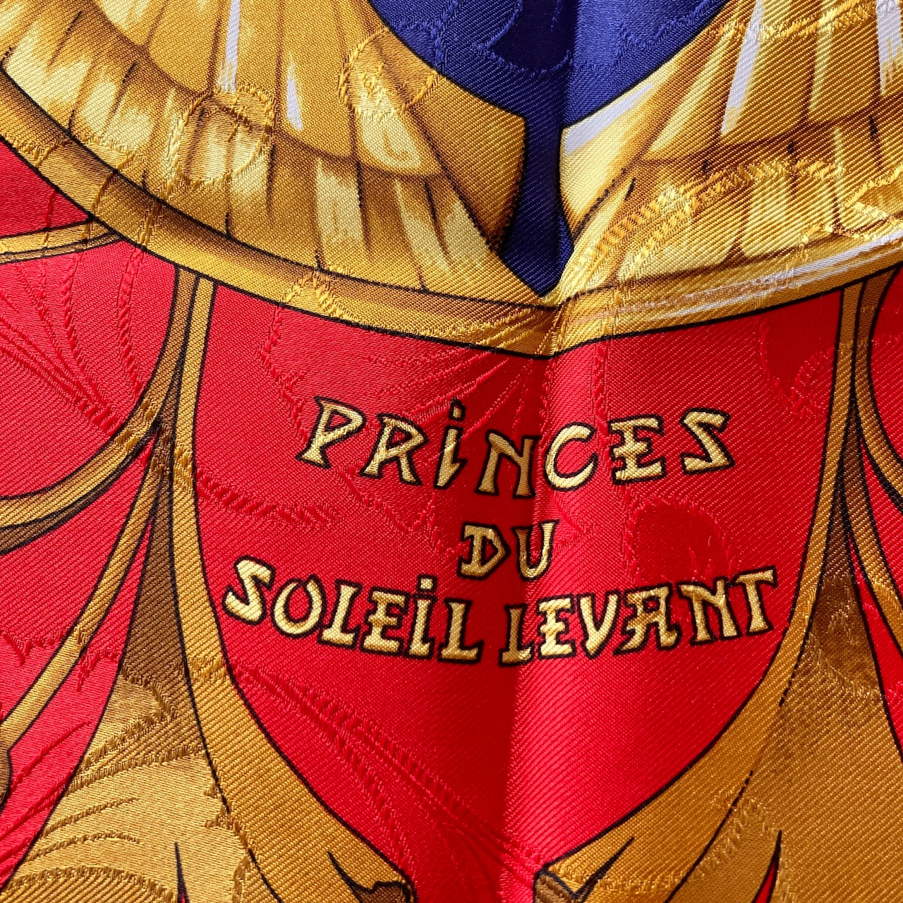 HERMESのカレ90 シルクスカーフになります。鮮やかなsilk生地に、"大名 日出る国の皇子"のイラストがデザインされております。