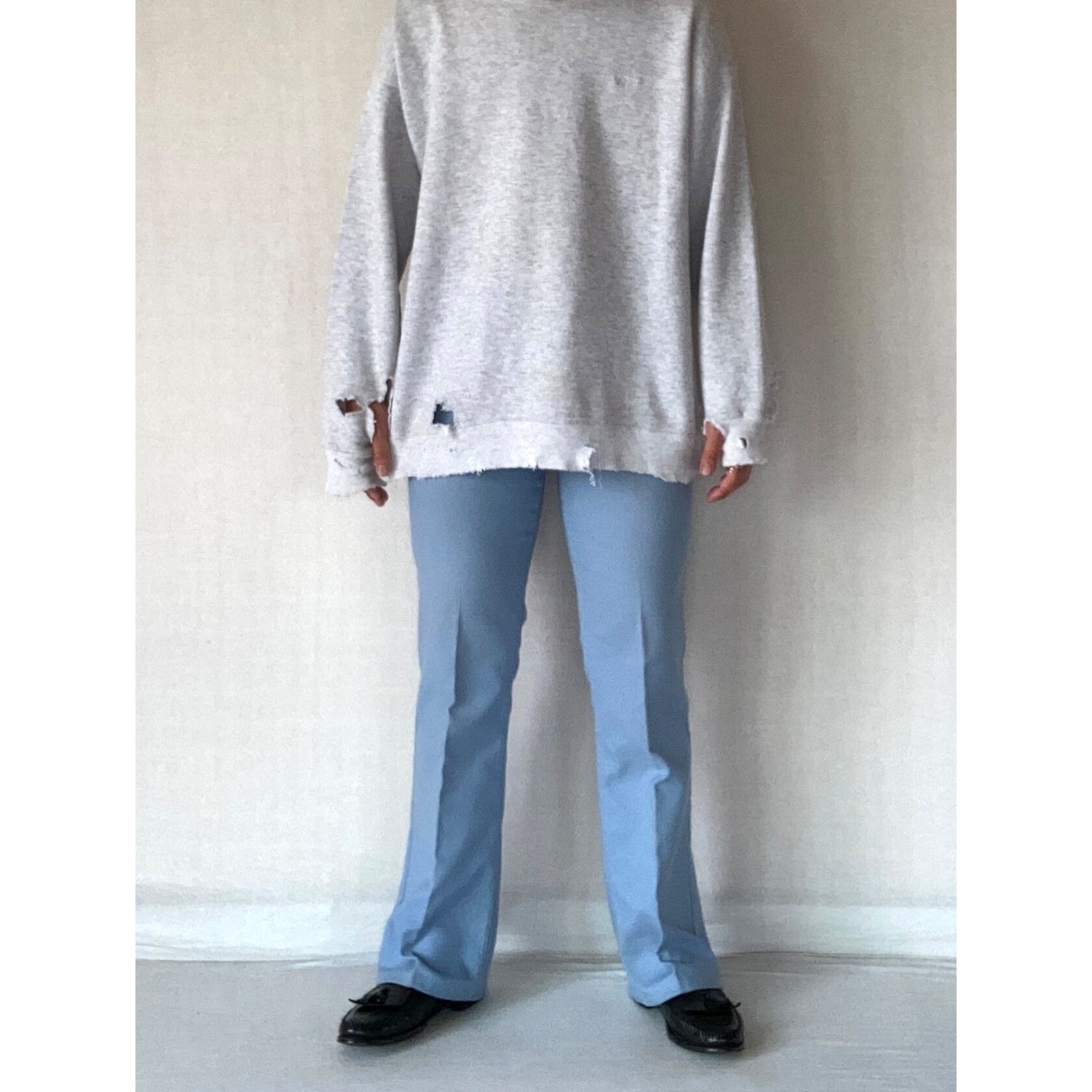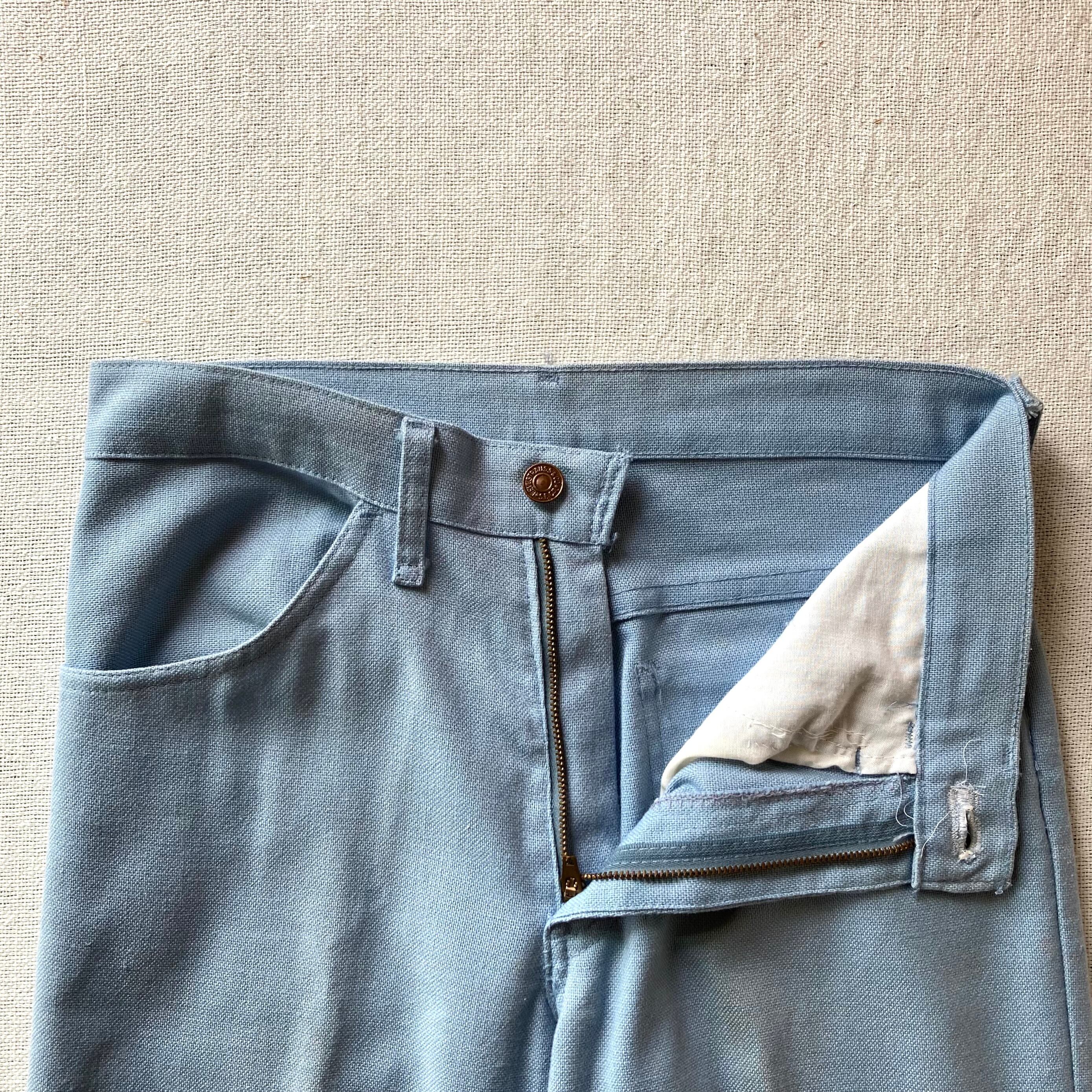 爽やかなライトブルーの色味に、W29のタイトめなブーツカットシルエットが特徴的な一本です。生地感も薄手で動きやすいかと思います。